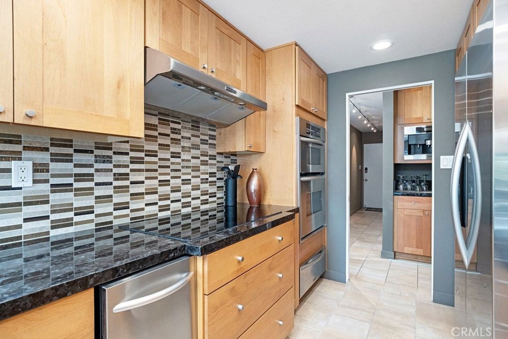 This remodeled high end 2 Bed 2 Bath corner unit has phenomenal views of the park and peek-a-boo views of the ocean!!This upgraded home has Tile floors throughout, Air Conditioning (One in the living room and another in the master bedroom), dual pane windows and sliders, custom vertical sliding panel window treatments with solar and block shades plus details galore. The unit features a built in sound system, recessed lights, the kitchen includes contemporary granite countertops and tile backsplash with top of the line appliances including double oven, warmer drawer, water filtration system, new stove top, a built in 24 wine bottle cooler and gourmet espresso machine. The master bedroom has two mirrored closets with built in wardrobe shelves, in-ceiling speakers and a nice size balcony attaches to a beautifully remodeled master bath with European porcelain tile in shower, granite countertops and contemporary Kohler and Grohe fixtures. This condo is located in the heart of Bluff Park near everything Long Beach lifestyle has to offer; restaurants, coffee houses, biking, parks and of course the famous Long Beach ocean walking paths in the sand!!!