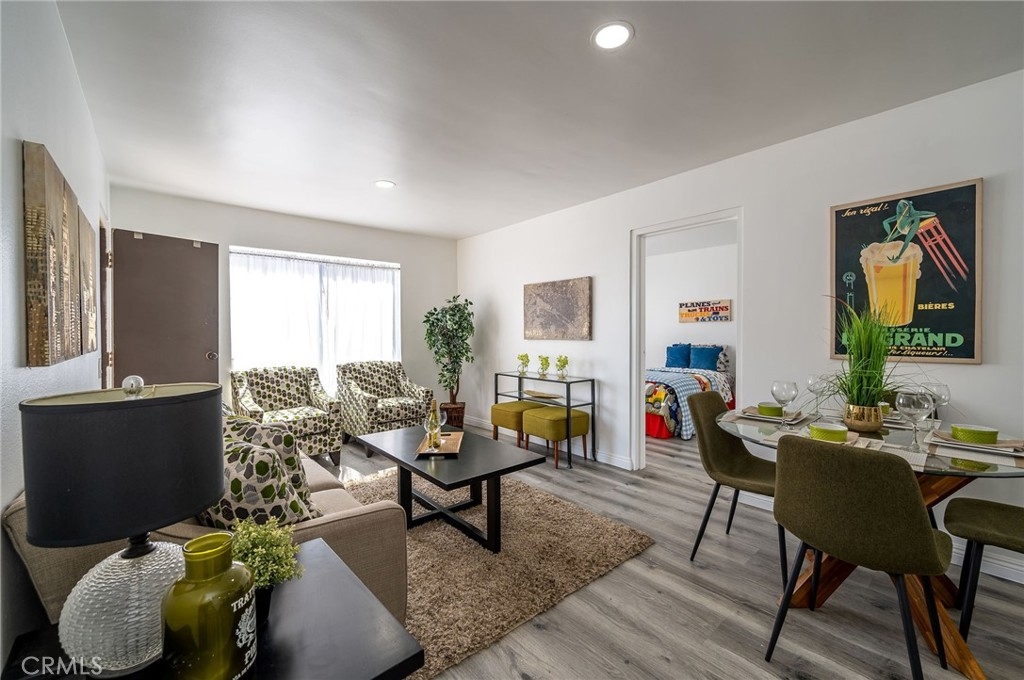 Welcome to your dream starter home in the heart of vibrant Downtown Long Beach! This beautifully updated 2-bedroom, 2-bathroom condo combines the best of modern living with the convenience of city life. Bathed in natural light throughout, this bright and airy space features sleek vinyl flooring, recessed lighting, and fresh paint—creating a move-in-ready home just waiting for your personal touch. The open-concept living, dining, and kitchen areas offer endless opportunities to design the perfect layout for your lifestyle. Whether you're hosting friends, working from home, or relaxing after a long day, this home provides the flexibility you need. The spacious primary bedroom includes an ensuite bathroom, an AC unit with a vent extending into the living room to keep you cool, and a bonus area perfect for a home office, reading nook, or extra closet space. The second bedroom comes with a portable AC unit—ideal for those hot summer nights—and can easily serve as a guest room, office, or flex space. Enjoy your morning coffee or unwind with a glass of wine on your private balcony, where you can take in stunning sunsets. And with your own parking spot in a secure, covered garage, you'll never have to worry about the hassle of downtown parking again. This home puts you just steps away from the best that Long Beach has to offer—restaurants, shops, entertainment, and the beach are all within walking distance. Whether you're looking for a space to call your own or a home with room for a roommate to help with the mortgage, this condo offers the perfect mix of comfort, style, and unbeatable location. Don’t miss out—schedule your tour today!