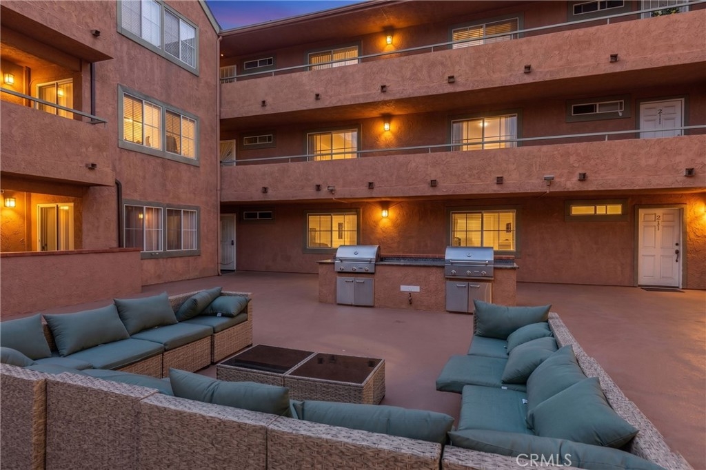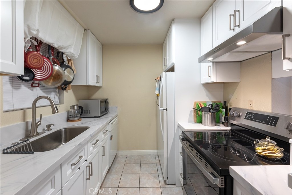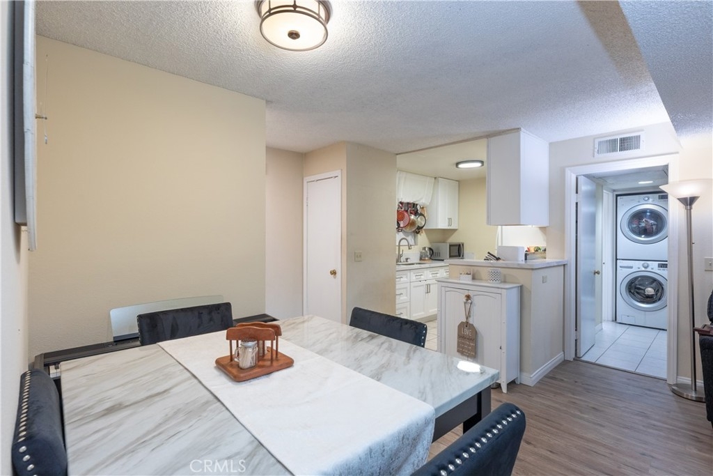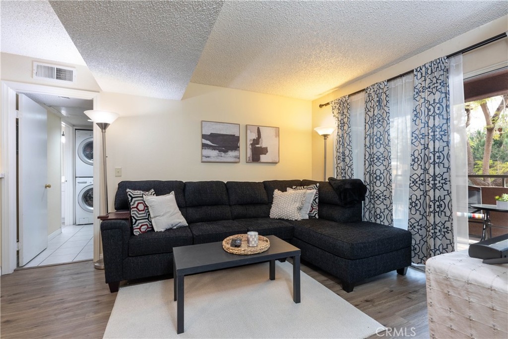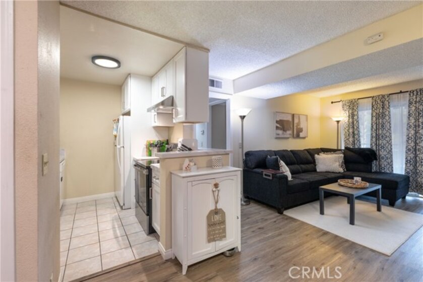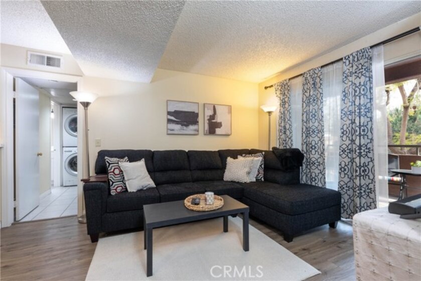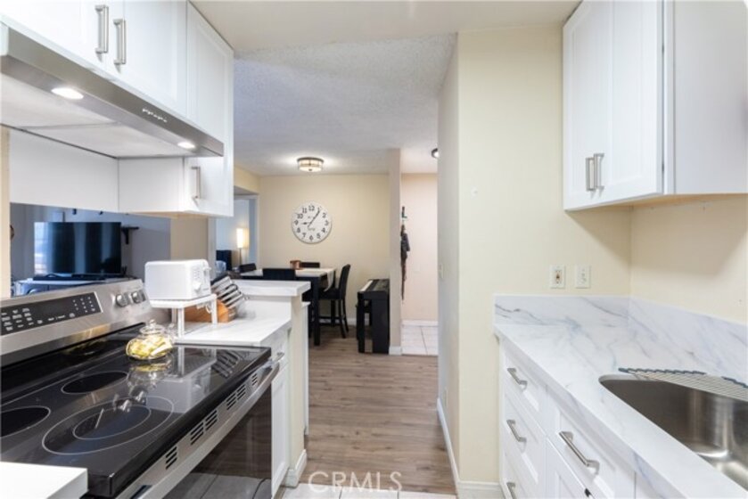 Welcome to this beautifully updated 2-bedroom, 2-bath condominium offering comfort, style, and convenience. This well-designed home features a spacious living room and dedicated dining area, complemented by generous closet space and an in-unit full size washer/dryer hookup (appliances included). The kitchen has been recently renovated with sleek new cabinetry, quartz countertops, and a newer electric range with hood—perfect for everyday living and entertaining. Upgraded vinyl flooring runs throughout the main living areas and hallway, adding a modern touch and durability. Both bathrooms have been tastefully remodeled with stunning tiled shower surrounds, while the primary bathroom showcases additional upgrades including a newer vanity, updated plumbing, and contemporary light fixtures. Enjoy seamless indoor-outdoor living with a private balcony accessible from the living room and both bedrooms—ideal for relaxing or hosting guests. This secure, well-maintained community offers a gated assigned parking space, 24/7 video surveillance, and controlled access via call box. Residents also enjoy a beautifully landscaped courtyard and a full suite of HOA amenities, including a fitness center, recreation room, and gas barbecue areas—creating a resort-style living experience right at home.