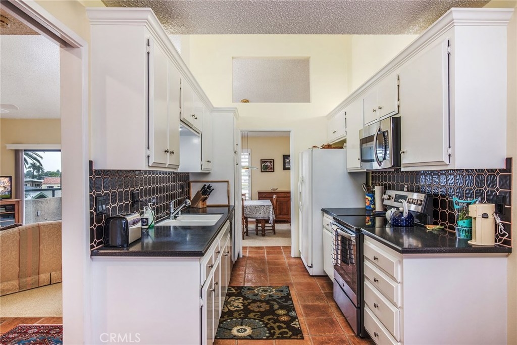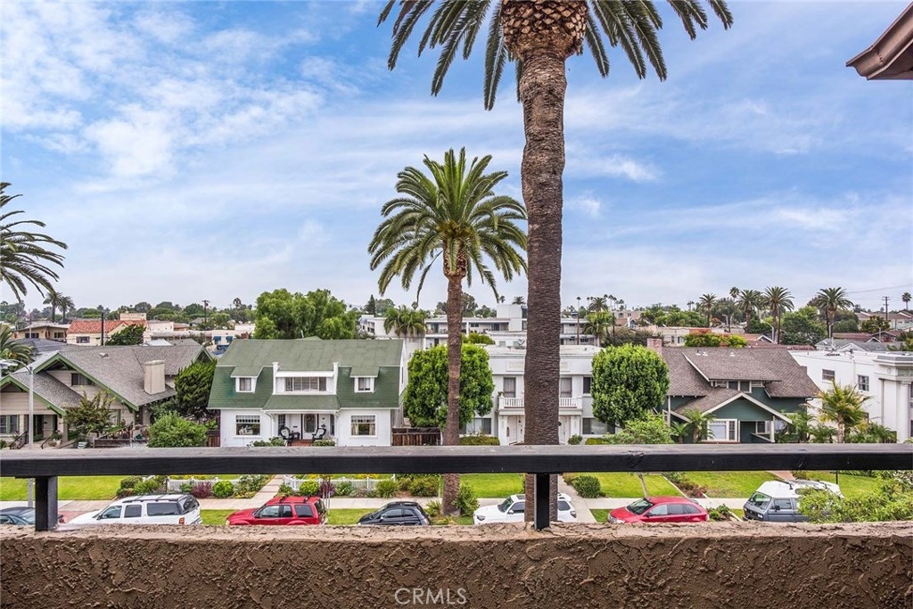 Beach living at its finest in this top floor condo with incredible city views just two blocks from the beach in the historic Bluff Park area of Belmont Heights. Walk through the entry into a spacious light and airy living room with dramatic cathedral ceilings, extra upper window and a fireplace that was upgraded in 2014. Perfect for entertaining, the dining room is open to the living room and seats a large party or you can extend your living space out onto the balcony and enjoy the night lights of Signal Hill. The kitchen features Corian countertops with a tile backsplash, newly painted cabinets and hardware, stove and dishwasher replaced in 2016 and a an additional eating area. The hallway has newer canned lights, great storage and a year old washer plus a dryer that stays with the unit. The master suite features a granite countertop in the dressing area, a walk-in closet and a separate step in tiled shower. There is paver tile flooring in the entrance, kitchen, hallways and bath. HOA’s are $318 and include gas, water and trash. The unit is 1433 sq. ft. and has two side by side parking spaces. One of only 24 units in the building this is a find.