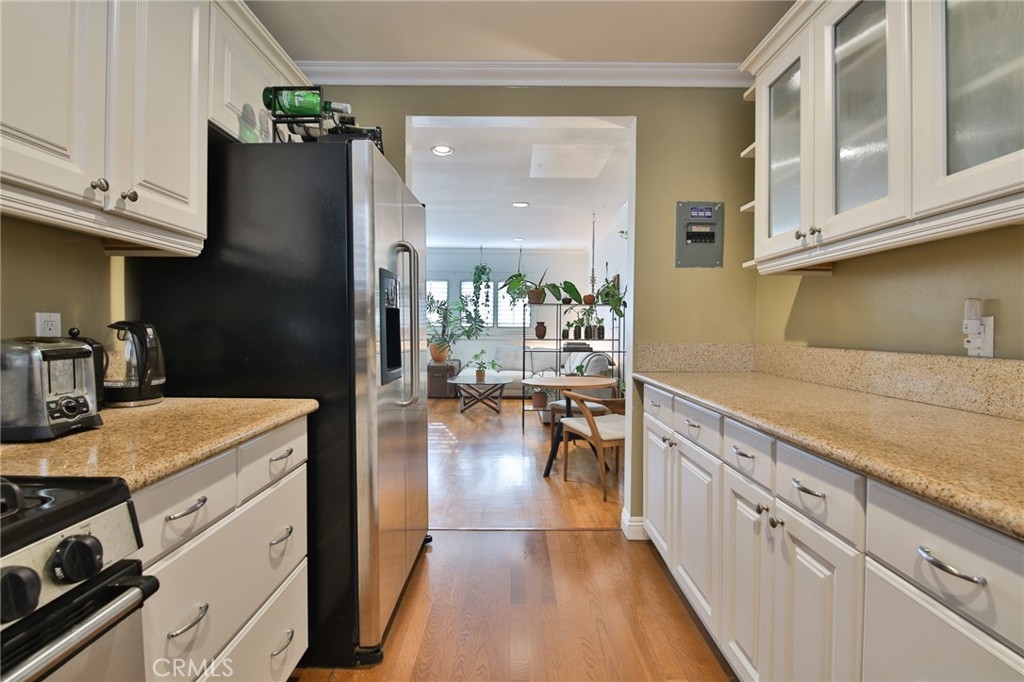 Motivated seller! Nicely updated 2 bedroom 1 bath condo in Alamitos Beach, close to Bluff Park just a short walk to the beach. Beautiful hardwood floors, custom paint, smooth ceilings, recessed lighting, crown molding, and plantation shutters. Updated kitchen features white cabinets, beautiful granite counters, stainless steel GE appliances, and laminate wood flooring. Remodeled bath features walk-in glass shower with subway tile, and modern vanity and fixtures. Inside washer & dryer. This home has been lovingly maintained by the owners. Low HOA dues of only $220 per month include water, trash, and landscaping. The building exterior was just recently painted and looks fresh and modern! Great location, close to the beach, Retro Row, Broadway Ave, Bixby Park & dog park and the Farmer’s Market, and all the great local restaurants, cafes, nightlife, pubs, bakeries, and more. Seller will provide an evening parking pass, pre-paid for 6 months, at a local parking lot 1 block away.