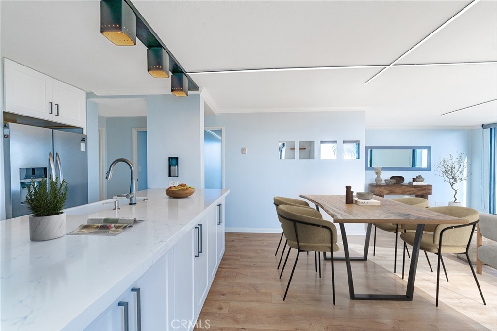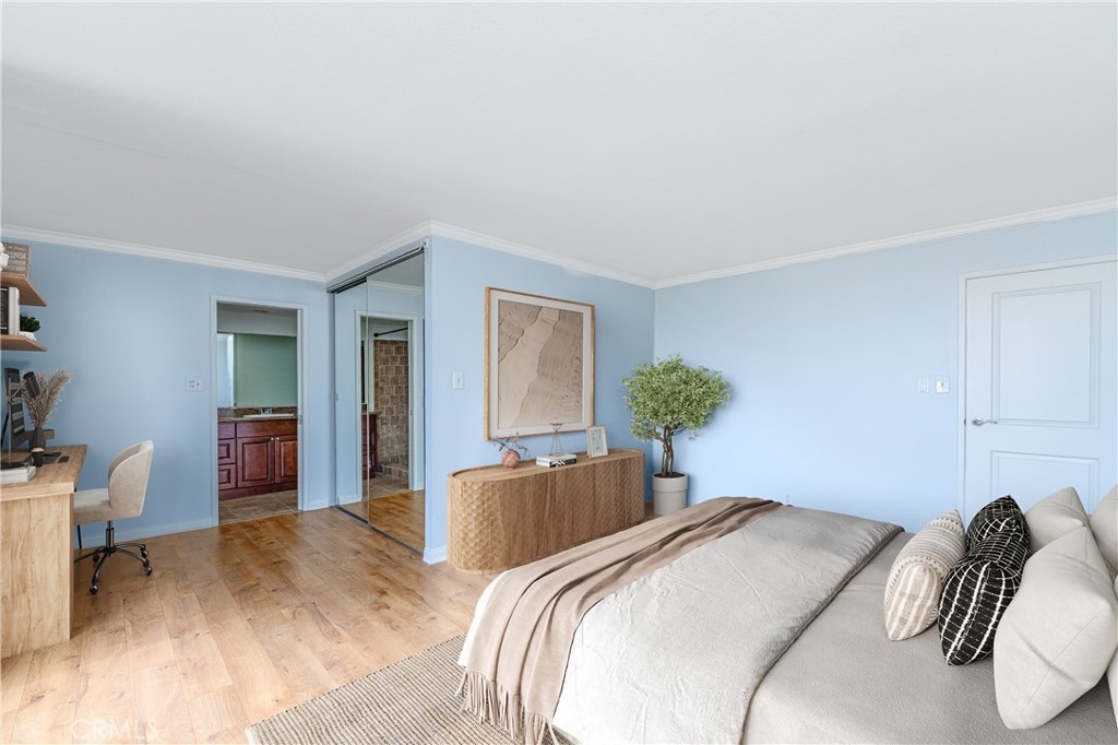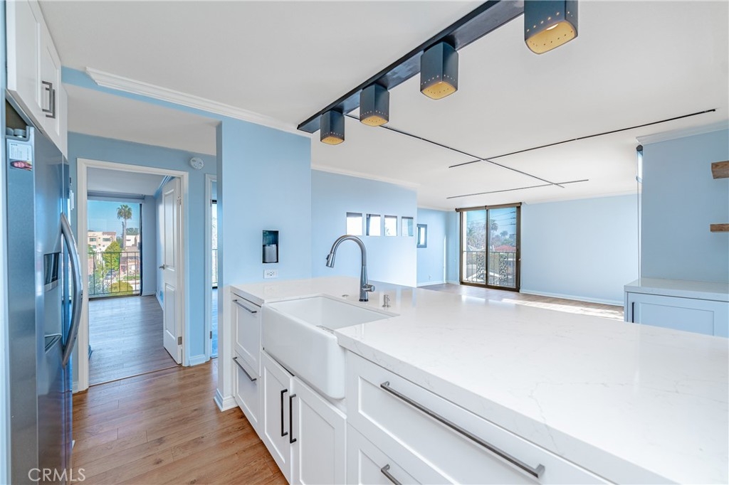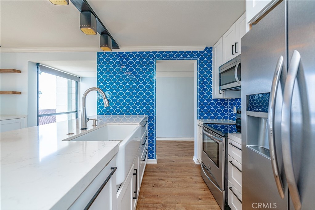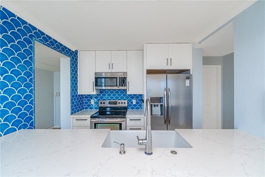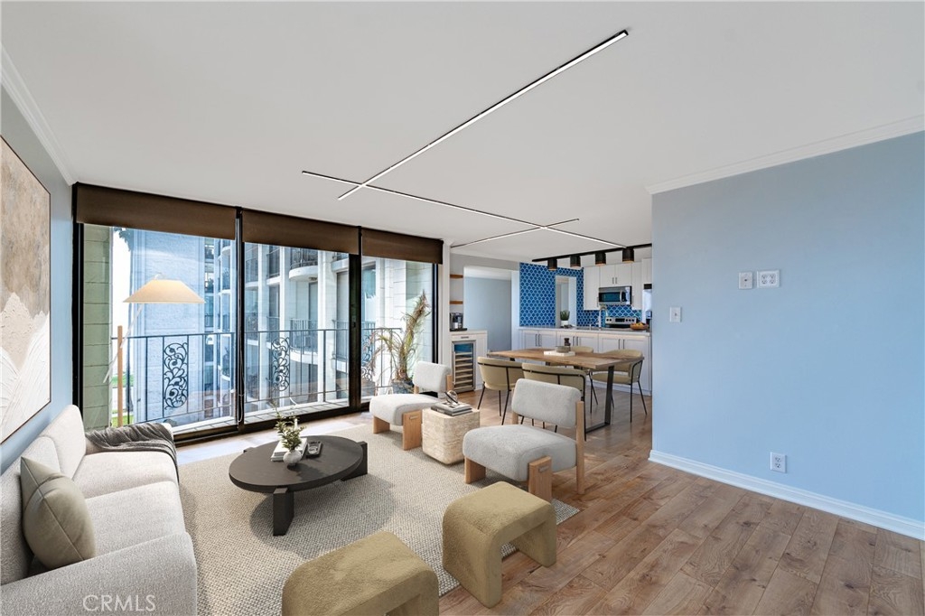 A RARE OFFERING: BEST PRICED TURNKEY OCEAN VIEW CONDO IN LONG BEACH. Discover luxury living in this stunning 2 bed, 2 full bath condo in the exquisite Versailles building, perfectly situated in the heart of Bluff Park. This beautifully upgraded corner unit boasts floor-to-ceiling, breathtaking ocean views . Revel in the elegant kitchen complete with soft close cabinets, quartz countertops, a two-drawer dishwasher, imported tile, and a chic dry bar with a wine fridge. Upscale appliances and additional storage complete this space. The kitchen opens up to the dining which seamlessly flows into the living room, granting the perfect open floor plan. Relish in the refreshing ocean breeze when the Fleetwood sliding doors are open, or unwind underneath the LED color smart lighting. This sophisticated space includes custom blinds that complete the modern ambiance. This home comes fully equipped with a refrigerator, washer, dryer, and tankless water heater for your convenience. Each bedroom has ample space and views of Bluff Park backed by mountains in the distance. The primary suite offers a great flex space that can be used as an office area or a place to expand your closet converting it to a "walk in". For added convenience, there is close elevator access from the unit to your secured, parking space. HOA offers an array of perks such as cable, high-speed internet, on-site management, and a plethora of other amenities, including a heated pool, BBQ grills, sauna & Clubhouse right off of the pool deck. It also covers other utilities and insurance. Just minutes from downtown Long Beach, Belmont Shore and steps away from the beach, 4th St Retro Row, ocean front fine dining, other eateries, parks, shopping and more, this condo embodies the ultimate coastal living. The ocean views are a must see in person. Photos do not do them justice. Seize the opportunity to call it yours today! Please see the features list in the supplemental section.