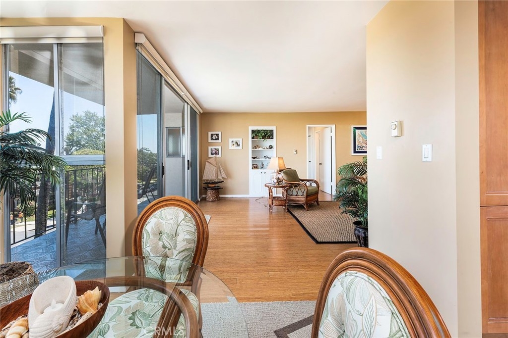 Located in the Carlton Imperial Association this top floor corner unit is a beautifully updated 2-bedroom 2 bath home with City and Mountain Views. You will love the bright and open feel and layout of this spacious condo with Bamboo flooring throughout, remodeled kitchen and baths in an incredibly well-maintained association. The Living room is light, bright and spacious and opens to the dining area and extra-large balcony. The kitchen is large with an arched expanded entrance, newer cabinets and quartz counters and with neutral tones making a timeless in style. The spacious master suite features a large wall of closet and an on-suite bath that has been beautifully remodeled. The guest room is spacious and has great views of the neighborhood and direct sun. There is a charming built in curio cabinet in the living area and great built in storage and drawers in the hallway. The association is well maintained and in a highly desirable location this condo comes with 2 parking spots. Located 1 block from the Bluffs and is ideal for great walkability and close to great restaurants, shops and coffee houses. Centrally located along the coast with great access to all Belmont Shore and Downtown LB have to offer.