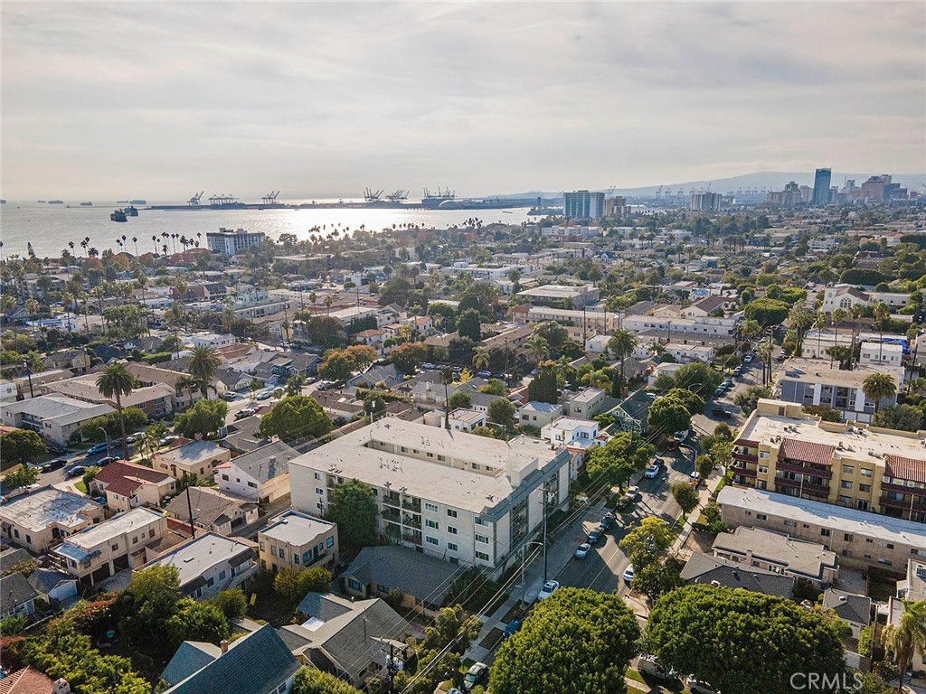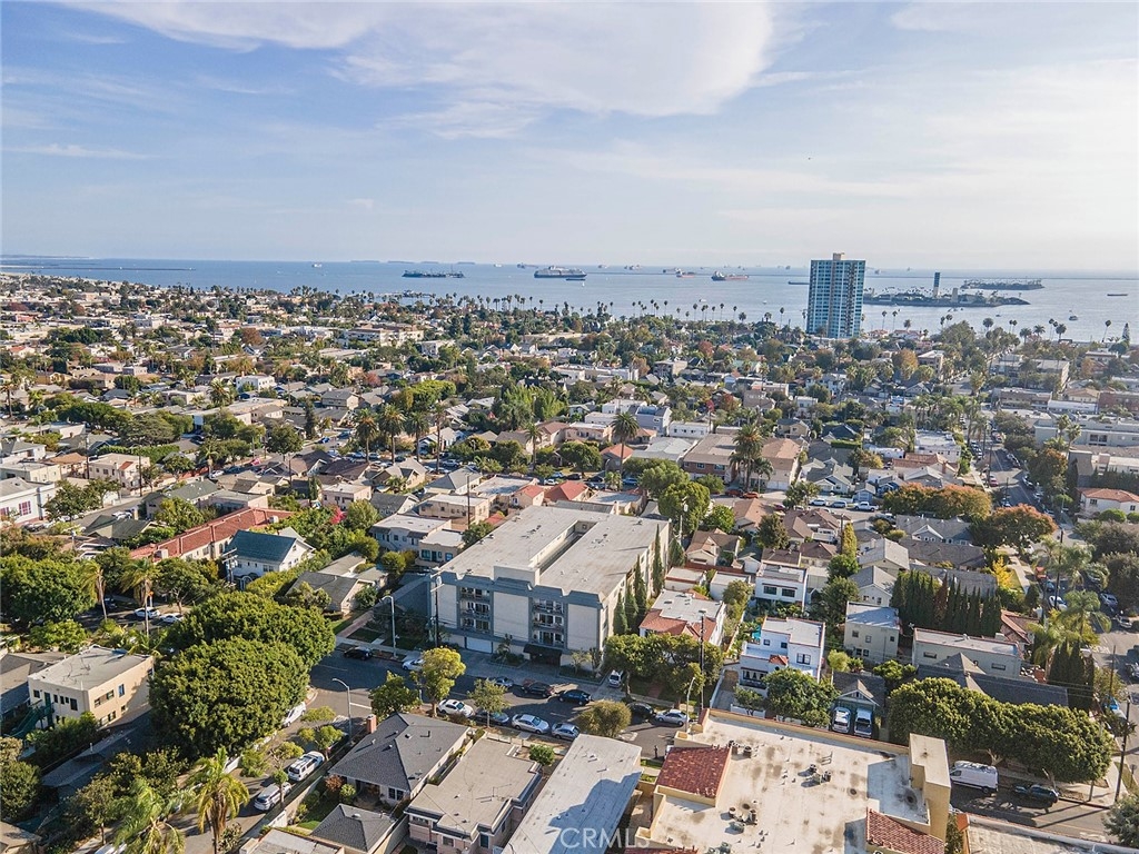 Location, Location, Location with a peek-a-boo ocean view says it all. In the heart of Bluff Heights, a historical neighborhood of Belmont Heights, sits a great courtyard style complex, only a few blocks to the beach, bike path, retro row, shopping, restaurants, entertainment, parks, dog parks, play ground, farmers markets, concerts in the park and so much more. Large top floor condo with a scenic West facing balcony with panoramic views of the ocean, the port and rooftops, so very private and inviting with an ocean breeze. Clean and ready to move in with scraped ceilings and laminate floors in living, dining and kitchen areas and carpet in the bedroom. Large walk-in closet in the extra large bedroom. The bathroom has been remodeled with a stand alone vanity and shower. All windows and balcony sliders are updated with dual pane windows and there is an A/C wall unit in the living room. This is a secured access building with an elevator and community laundry room on every floor. There is 1 parking spot with private storage in the underground secured parking garage. Low HOA $267 and includes water, trash and sewer, insurance, management and controlled access and also pet friendly. Only Electric grills are allowed on the balcony per City of LB. Laundry room is located opposite of the elevator and is on every floor. In unit laundry is allowed to be installed inside the unit. There are also 2 extra HOA owned parking spots raffled off quarterly for use 3 months at a time for $40/per month. Don't waste another minute, come see it before it's gone and you could be in by the holidays!!!