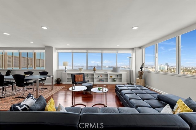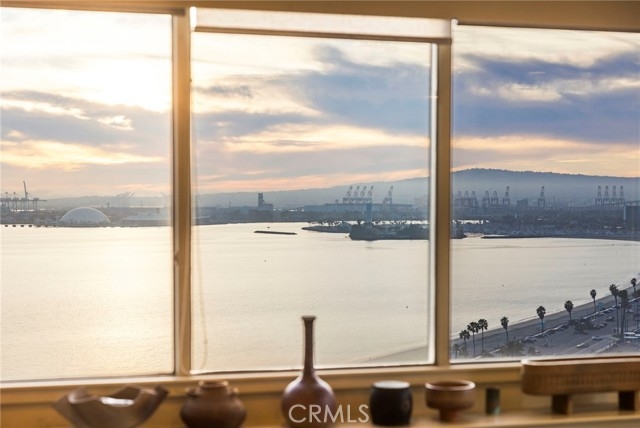 LOCATION, LOCATION, LOCATION! Welcome to this mid-century modern gem in the iconic The Galaxy Towers offering breathtaking panoramic views of the Pacific Ocean, coastline, Catalina Island and San Gabriel Mountains. With 30 windows filling the space with natural light, this fully renovated residence features elegant roller shades for privacy and light control. The stylish kitchen and remodeled bathrooms boast quality cabinetry and marble tile flooring, while the cherry wood flooring throughout the unit adds sophistication. An in-unit washer and dryer provide convenience, and the HVAC system ensures year-round comfort. Ideally located near Bluff Park, residents enjoy easy access to outdoor activities, the oceanfront bike path, and the vibrant shopping and dining destinations of 2nd Street, Shoreline Village, and The Pike. Own a piece of Long Beach history while experiencing the finest in coastal luxury living! Good morning. Well-maintained community with an active Homeowners Association dedicated to enhancing the building. Recent upgrades include a new roof with a 30-year warranty and improvements to safety standards.