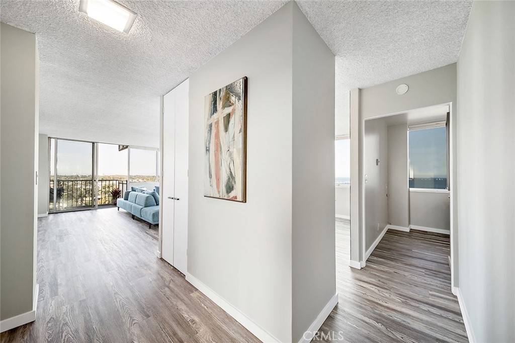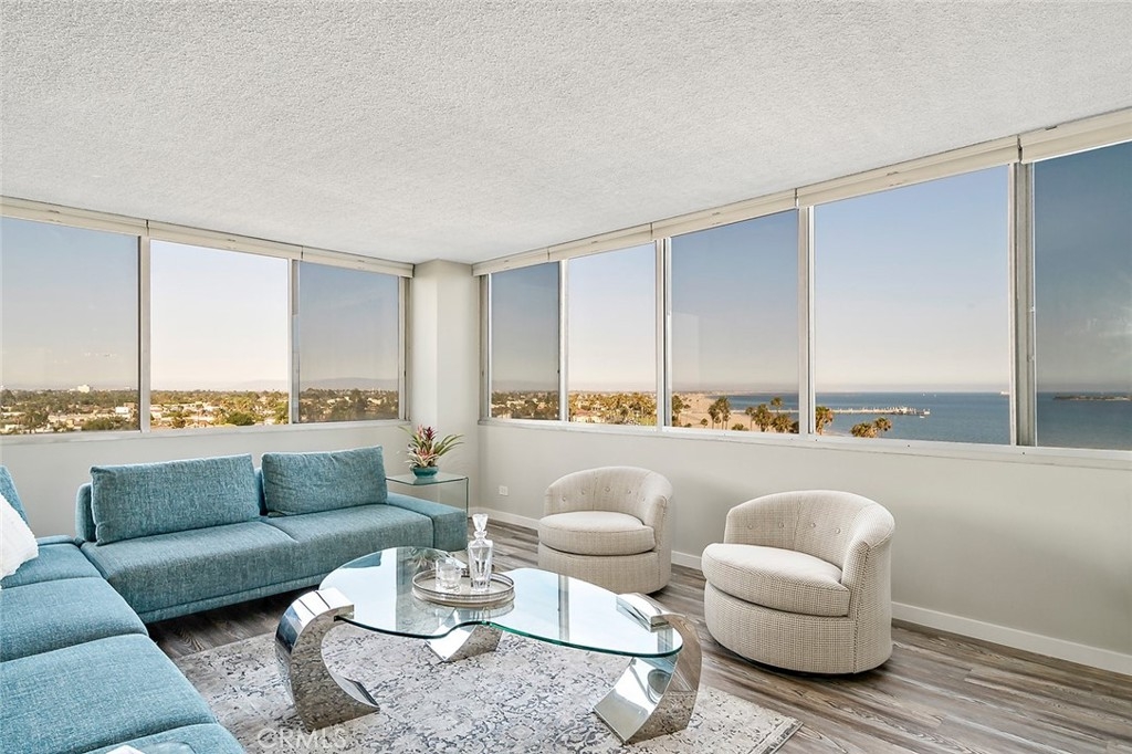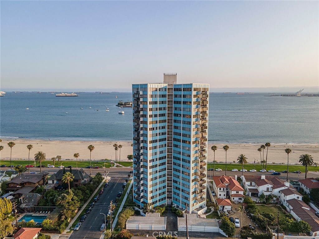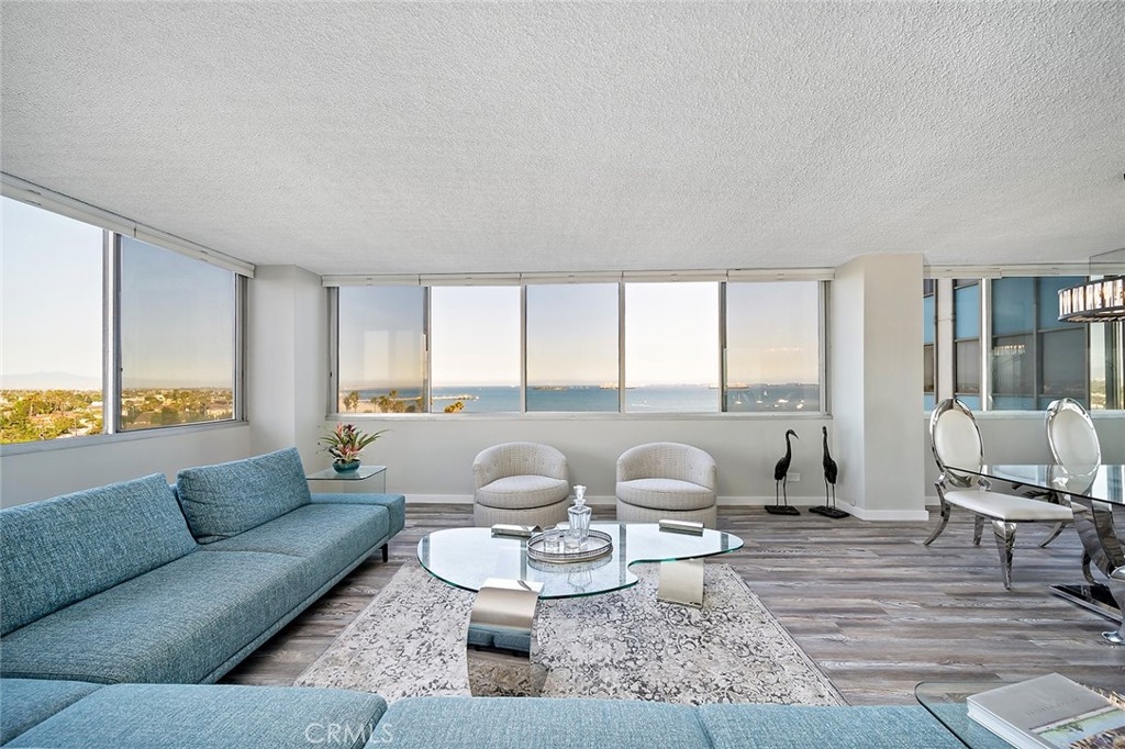 The Iconic Galaxy Tower built circa 1960's. This mid century building is located in the Bluff Park neighborhood of Long Beach directly across the street from the Pacific Ocean. With only 4 units per floor and no common walls you can enjoy unparalleled privacy. Natural light pours in throughout the day with the unit's N/W exposure and without the heat from the afternoon sun. The spacious 1500 sq ft home has Ocean, Coastline, Catalina and Mt Baldy views from almost every room. New Paint and high end Vinyl Plank flooring throughout as well as all new custom window coverings. Closets line the length of each bedroom. There is also a large private storage closet directly outside the unit. This is one of the few units with inside Laundry and TWO side by side parking spaces, very conveniently located in the garage, as well as an additional community laundry. There is a community outdoor BBQ area. Directly across from the street is a grassy bluff area and stairs down to the beach, bike and running paths. Conveniently located, just a short distance to Belmont shore, shops, bars & restaurants or to the downtown area nightlife.