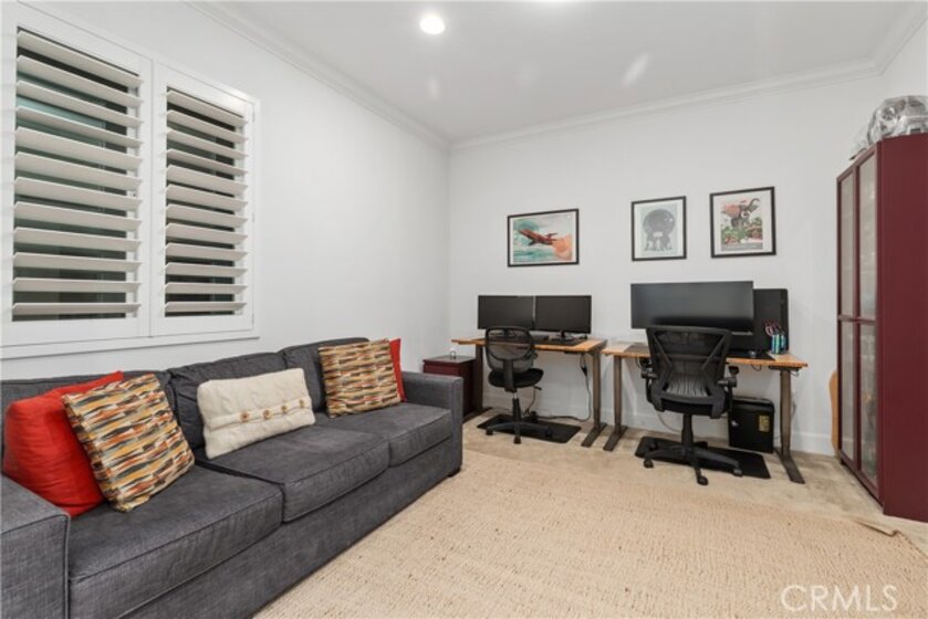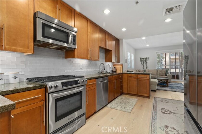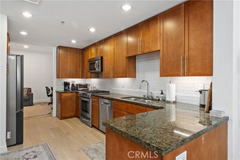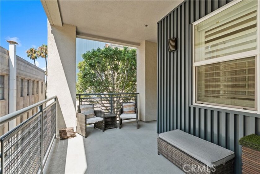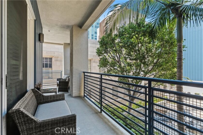 Experience coastal luxury living at Blu, a premier condominium community in the heart of the East Village Arts District in Downtown Long Beach—just blocks from the beach, Shoreline Village, and within walking distance to top restaurants, bars, and entertainment, with convenient access to the Metro Blue Line for an easy commute to Downtown Los Angeles. This spacious second-floor end unit features two bedrooms and two bathrooms, with a separate den/office area, and an open-concept layout with soaring 9-foot ceilings, new engineered hardwood floors, new plantation shutters, blackout shades, ceiling fans, and abundant natural light. The modern kitchen offers granite countertops, new stainless steel appliances, a glass tile backsplash, soft-close cabinetry, and seamless flow into the living area, perfect for entertaining or everyday comfort. The primary suite includes a walk-in closet with custom organizers and a spa-like en-suite bathroom with dual sinks, an oversized walk-in shower, and a built-in bench, while all closets throughout the home are professionally outfitted for maximum storage. Additional features include a private laundry room with built-in shelving, a wrap-around balcony with courtyard views and ocean breezes, two assigned side-by-side parking spaces in a secure gated garage, and a private 10' x 5' storage unit. Blu’s upscale amenities include a boutique-style lobby with a reading area and coffee bar, a courtyard with a fireplace, putting green, BBQ area, a fitness center, and a sports lounge with a billiards table and four TVs, including movie and sports channels. Pet-friendly and equipped with an upgraded security camera system, this exceptional home offers a rare opportunity to enjoy stylish, modern living in one of Long Beach’s most desirable communities.