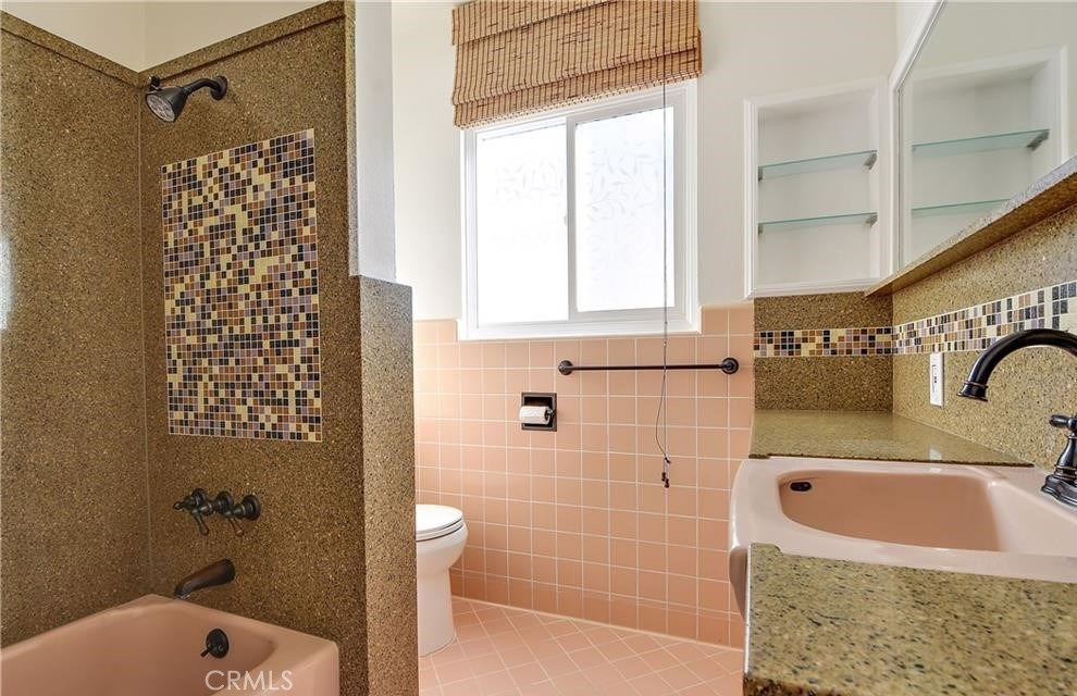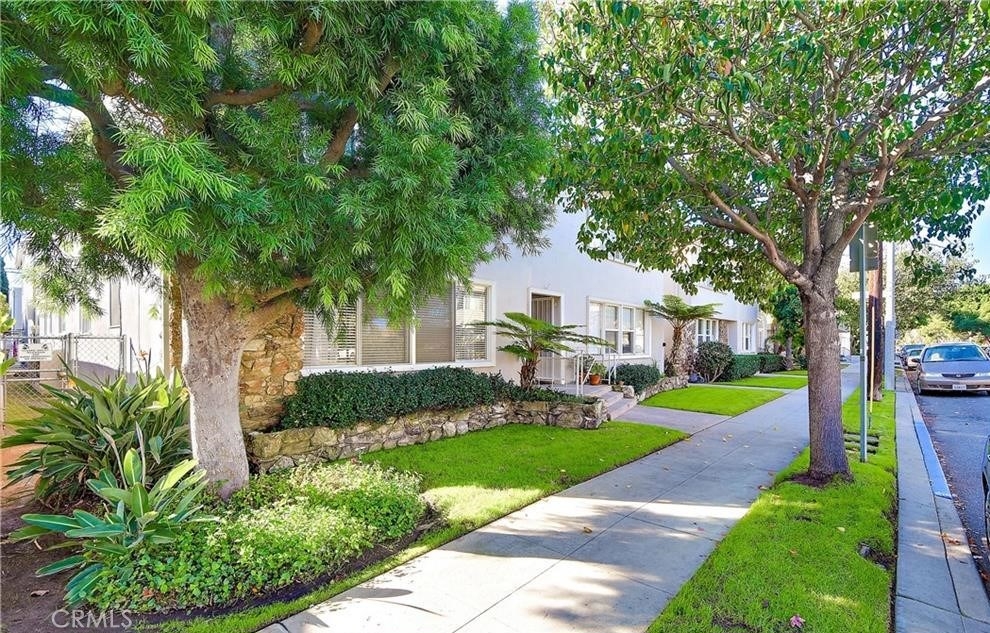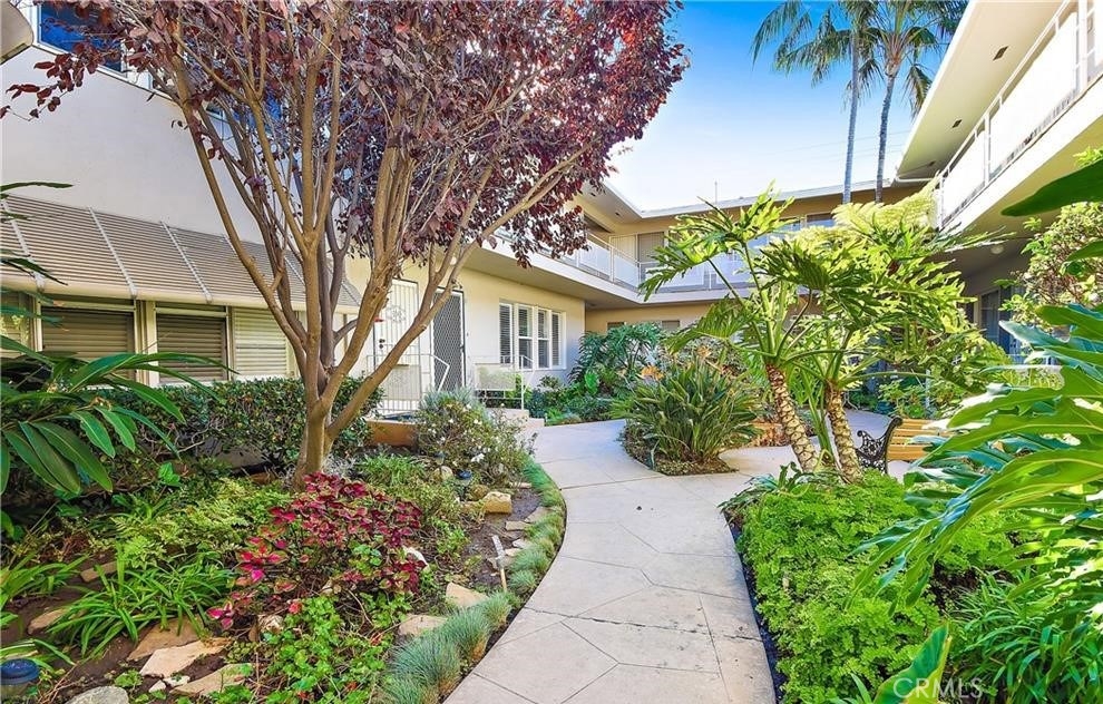 Lovely and bright Mid-Century complex in an awesome and historic Bluff Heights area - what a FANTASTIC LOCATION in one of the most desirable neighborhood of Long Beach. This quiet and peaceful END-UNIT condo is located on the 1st floor of a lush garden courtyard filled with the serene sound of a soothing fountain. It is conveniently located on the 1st floor and the unit is very well maintained. The unit is bright and airy. There are beautiful (solid) hardwood floors throughout the living, dining, and bedroom areas. Plantation shutters throughout allowing the right amount of light in this beautiful space. Recently upgraded double-paned vinyl windows. The galley-shaped kitchen features granite counters and a decorative backsplash. Ceiling fans in the dining and living room keeps the condo cool, while the recently replaced heater will embrace you on a chilly night. There are plenty of storage throughout and both hall and (an oversized) bedroom closets have cedar lining. Association just replaced roof. This Bluff/Belmont Heights area is close to great shops, grocery store, restaurants and is walking distant to the beach. Low HOA of $129/month and awesome location will surely attract the discerning buyer.