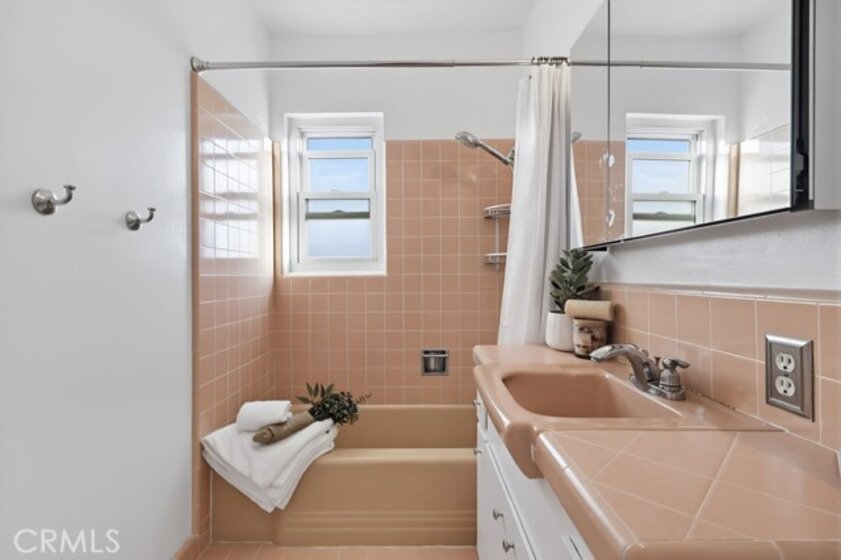 Experience the Perfect Lifestyle blend of beachside comfort and urban flair in this 1-bedroom, 1-bath Alamitos Beach condo — a standout value in one of Long Beach’s most vibrant neighborhoods. Perfectly positioned in a highly walkable, amenity-rich area near Retro Row, this home is surrounded by artisan cafés, curated dining, vintage finds, and an artful local vibe — ideal for those who love style, community, and convenience. A rare find and one of the best priced that you will find in Alamitos Beach. Inside, natural light fills the space, highlighting an open layout that flows effortlessly throughout. A nod to mid-century design, the vintage pink bathroom tile and original kitchen finishes add a cool, nostalgic charm that celebrates the home’s 1950s character. The kitchen includes a water purifier system and a functional layout ideal for everyday living. The spacious bedroom offers two large closets and a newer mini-split A/C and heat system for year-round comfort. Tucked within a community featuring gated controlled access and lush landscaping, this upper-corner condo offers both privacy and character. Although the unit does not come with assigned parking, it’s set in an area with convenient street parking and available permits, making parking simple and flexible. Additional highlights include electric appliances, low HOA dues covering water and trash, and easy access to the community laundry room. Pet-friendly and close to local parks and green spaces, it perfectly blends vintage charm with modern comfort. Perfect proximity to Bixby Park, Bluff Park, gorgeous ocean views, scenic beachfront paths for walking and biking, and the cafés and boutiques of Retro Row and Broadway — a true reflection of Long Beach’s eclectic lifestyle.