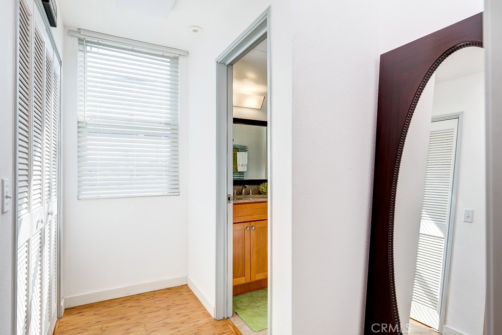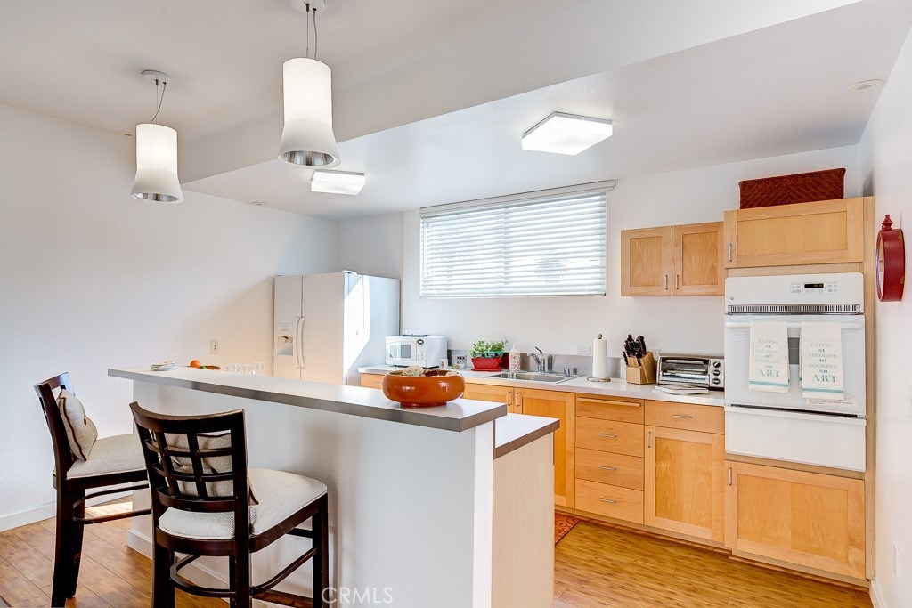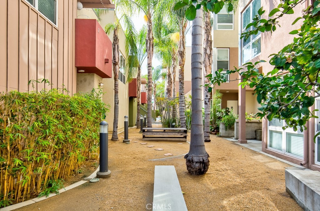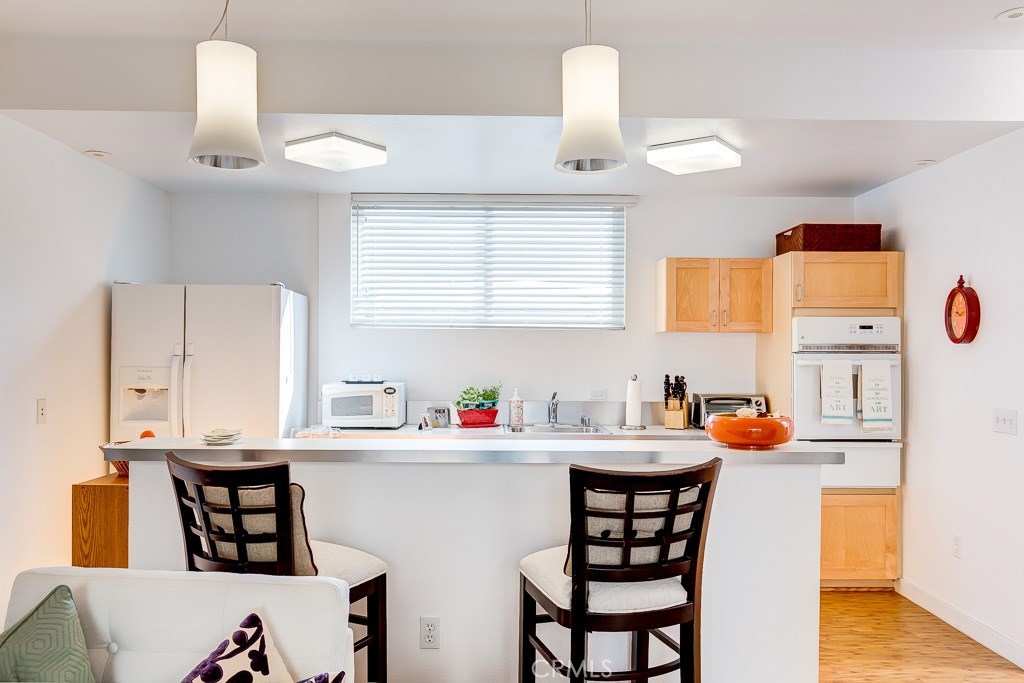 Metro-Living at it’s best! This corner unit is nestled within the complex away from the main road & only has one shared wall and no one above. Goldenrod colored bamboo laminate flooring throughout complements the neutral palette of polar white walls accented with frosted white/brushed nickel accented contemporary lighting fixtures. Dual pane functional windows provide plenty of passive illumination, cross ventilation and quiet. Dress up the windows to reflect your taste or keep the minimalist-look w/ the existing 2 inch adjustable blinds. Maple kitchen cabinets with brushed nickel hardware are anchored by beach sand colored laminate counters. A full sized, double door fridge w/ on board filtered water/ice dispenser comes with the sale; and cooking & baking is made easy w/ a built-in oven and a 4 burner, gas cook top. The full sized, newer top loading washer/dryer are hidden behind louvered doors and tucked in their own alcove. Sand and white colors in the main bath are fresh & clean and the granite top vanity and mahogany colored wood framed mirrors & medicine cabinet lend a custom look to the bathroom. An overhead ceiling fan in the living room accented w/ brushed nickel and walnut blades keeps the air moving and offer an additional option of soft down lighting on a rheostat. The single parking space assigned to the unit is within an enclosed garage w/ remote and is located steps away from the front door.