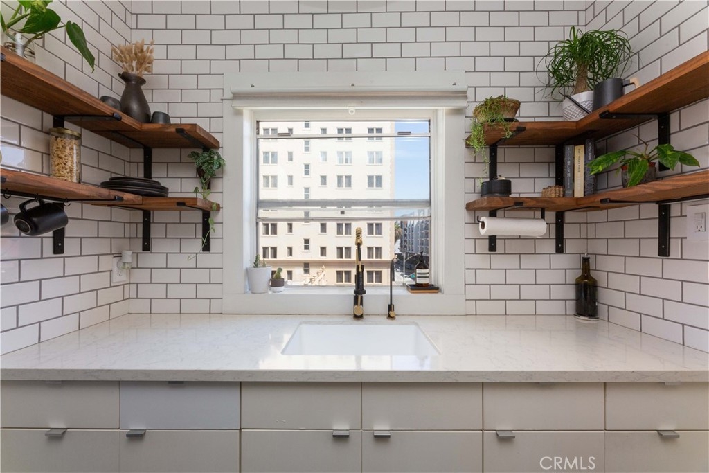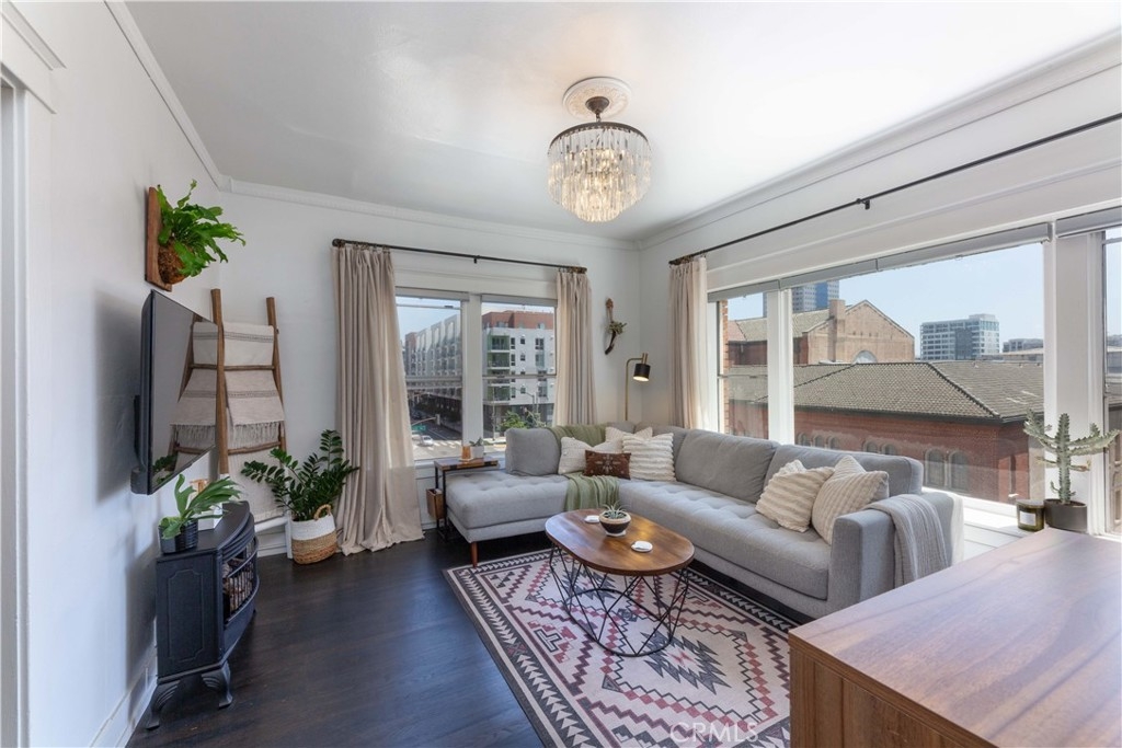 **Charming 1920’s 1-Bedroom Condo with Character in a Prime Location (just mins away from many attractions)** Step into a delightful piece of history at The Californian! This beaux-arts style brick building was built in 1923 by architect Joseph Roberts. Unit 401 is one of nine "double" units in this 49-unit condo building, and is a south-east facing corner that has an abundance of natural light, pouring through its nearly floor-to-ceiling corner windows each morning. Rich in character, this home features beautifully refinished original hardwood floors, vintage crown moldings, upgraded stainless steel appliances and fixtures, subway tiles in the bathroom, floor-to-ceiling tiling in the kitchen, gorgeous built-ins, and tons of overhead storage. The spacious living room is perfect for relaxing or entertaining while enjoying beautiful downtown views. The kitchen combines modern convenience with classic touches, making it a joy to cook in. Owners also enjoy a rooftop solarium with views of downtown Long Beach, the Port of Long Beach, The Vincent Thomas Bridge and the Palos Verdes Peninsula. The HOA covers water, trash, gas, and all building maintenance; owners are only responsible for their individually metered electric bill and wi-fi. The building elevator was heavily updated in 2018 and recently painted. Key-fob secure mailroom. A basement laundry room is available to all residents which is accessible via cell phone app payment. There is also basement storage for each unit; this unit has two - a large and small storage unit, along with a locked communal bike storage room. Within close proximity just minutes away from nearby cafes/restaurants, trendy shops, and local parks, The Pike, The Queen Mary, Aquarium of the Pacific, East Village Arts District Public Transportation, FWY's and Ocean Boulevard to the beach. In addition to the attractions listed above, this condo is a sound investment when you consider: the Olympics is coming to Long Beach in 2025, Long Beach's upcoming developments near the water and the nearby beautiful public library cost $44 million to renovate. This rare condo offers the perfect blend of historic charm and modern convenience—don't miss out on making it your own!