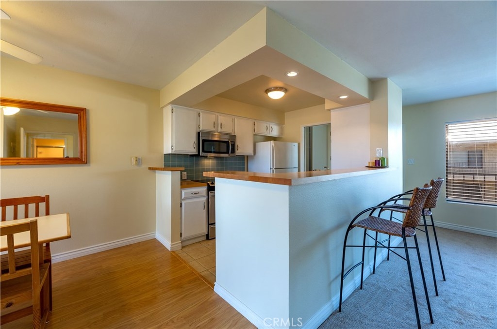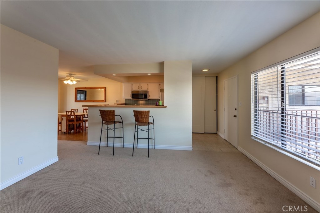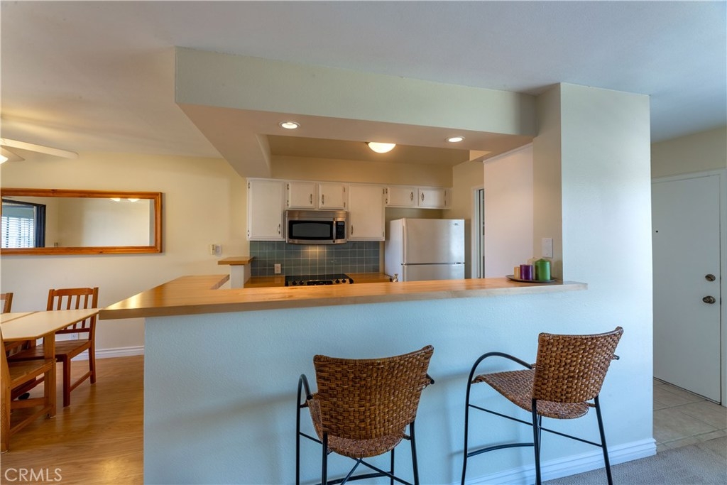 Price Improvement for you to move in quick. Welcome to Bixby Terrace, a very quiet and clean complex of only 42 units in the heart of Bixby Knolls. This unit is a rare find on the top floor with a balcony facing the north, a wonderful breeze and views of the mountains on a clear day. The kitchen has been remodeled with recessed lighting and boasts butcher block counter tops, stainless stove, microwave and dishwasher, and a fridge is included in the sale! Additional upgrades include popcorn ceiling removed, freshly painted and brand new carpet and baseboards in living and bed rooms, dining room has laminate flooring. Bathroom has a new vanity, toilet, and flooring. One (1) parking space in secured gated garage that includes plenty of upper storage! HOA dues are low and include water, trash, and grounds maintenance. Experience the Knolls breweries, mom & pop shops, restaurants, and First Fridays fun on the Avenue and Boulevard! Low HOA of $285. See the Virtual video at https://www.youtube.com/watch?v=CWR7DdnPADk