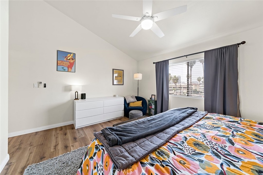Welcome to this bright and airy, beautifully updated top-floor corner unit condo in Bixby Knolls! This 2-bedroom, 2-bathroom home has 1136 square feet of comfortable and well-designed living space. With numerous upgrades completed in 2020, this unit is turnkey and move-in ready. Just past the entryway, you’ll find the beautifully appointed built-in wet bar with granite counter, bar sink and ample cabinet storage. The living room has vaulted ceilings and a three-panel glass sliding door to the outside balcony, enhancing the open and spacious feel. Gorgeous wood flooring blends the living area seamlessly with the dining area and galley kitchen with redone electrical including new panel. The stainless steel refrigerator and stove are included, along with a built-in dishwasher and microwave. The combination washer/dryer unit conserves space while offering the convenience of in-unit laundry. (Plus, the building also has a community laundry area.) The primary bedroom has a remodeled en suite three-quarter bath with dual sinks and newer tile flooring. Across the hall you’ll find the second bedroom and another full bathroom. The original heating system has been upgraded to a mini-split style HVAC for heating and cooling with a unit in each room. Along with ceiling fans in both bedrooms, you can maintain a comfortable temperature year-round. Smart switches for lighting are also installed throughout the unit. The secure building has a lovely inside courtyard and patio area with grills and picnic tables for resident use. This unit comes with 2 assigned parking spaces in the shared garage. The building is in a great area of Bixby Knolls, walking distance to shopping and restaurants, and with easy access to freeways.