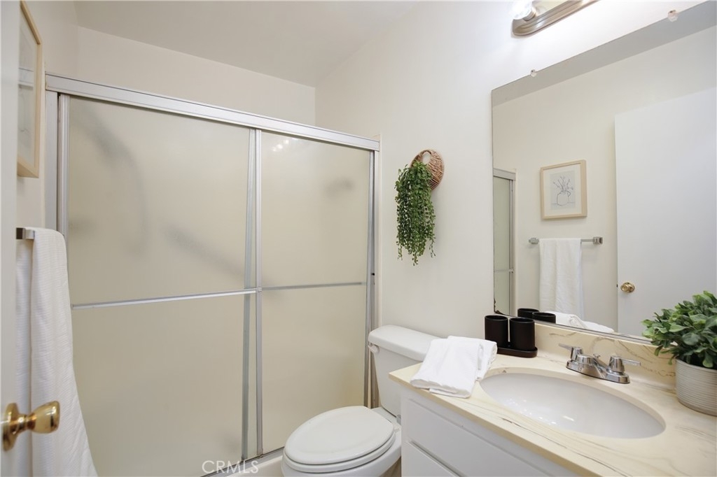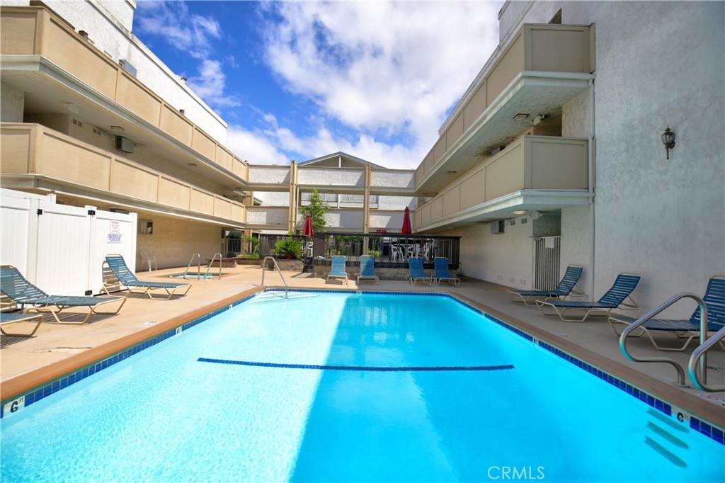 Welcome to this inviting 2-bedroom, 2-bathroom condo that is thoughtfully designed and offers a spacious open-concept living area. The large slider allows natural light to come in while the greenery allows for privacy. The kitchen has freshly painted cabinets and there is a large closet off the dining that would make a great an oversized pantry. The primary bedroom featuring an en-suite bathroom for added convenience and privacy. The second bedroom is versatile and can serve as a home office or guest room. The hall bathroom can serve guests as well as be the bathroom dedicated for the second bedroom. This condo offers the added benefit of a quaint private patio, where you can enjoy your morning coffee or unwind in the evenings. Additionally, residents of this community have access to various amenities, such as a swimming pool and spa, courtyards, BBQ areas, and communal spaces. Located in a desirable neighborhood adjacent to Bixby Knolls, this condo provides easy access to local shops, dining, and transportation options. Whether you're a first-time buyer or looking to downsize, this 2-bedroom, 2-bathroom condo is the perfect place to call home.