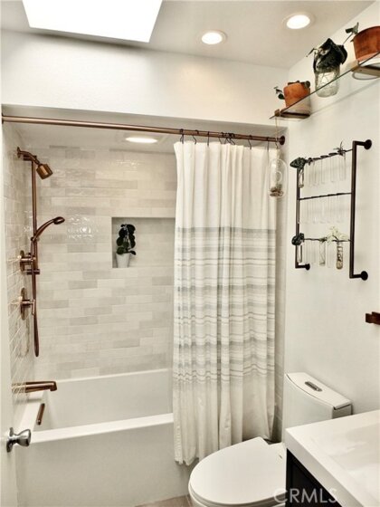 EV CHARGING AT YOUR PARKING SPACES. Modern Living in Belmont Heights, 2 Bed + Office Area, Vaulted Ceilings, AC and EV Charging. Welcome to this top-floor, southwest-facing condo in Belmont Heights, just minutes from the beach, Retro Row, and Belmont Shore’s vibrant dining and shopping scene. This spacious 2-bedroom + office area, 2-bathroom unit spans 1,205 sq. ft. and features vaulted ceilings in the living and dining rooms that create an airy, open feel. A wood-burning fireplace adds warmth and charm to the living space, while faux wood floors flow seamlessly through the living room, dining room, hallway, and primary bedroom. Enjoy multiple private balconies—off the living room, dining area, office area, and primary suite—perfect for morning coffee or coastal breezes. The kitchen is both functional and stylish, featuring an electric stove, refrigerator, and dishwasher. A side-by-side washer and dryer are conveniently located in a hallway closet. Both bathrooms have been beautifully updated with a sleek European design and skylights that fill the spaces with natural light. The primary bedroom features a vaulted ceiling, access to a private balcony, and an ensuite bathroom. Additional highlights include: Elevator to 3rd floor, New 2-zone central heating & air system , Only one shared common wall for enhanced privacy, 2 side-by-side parking spaces in a gated garage, EV charging station in owners parking area, guest parking in the complex. This move-in-ready condo offers the best of Southern California living with modern amenities, stylish upgrades, and a prime location.
