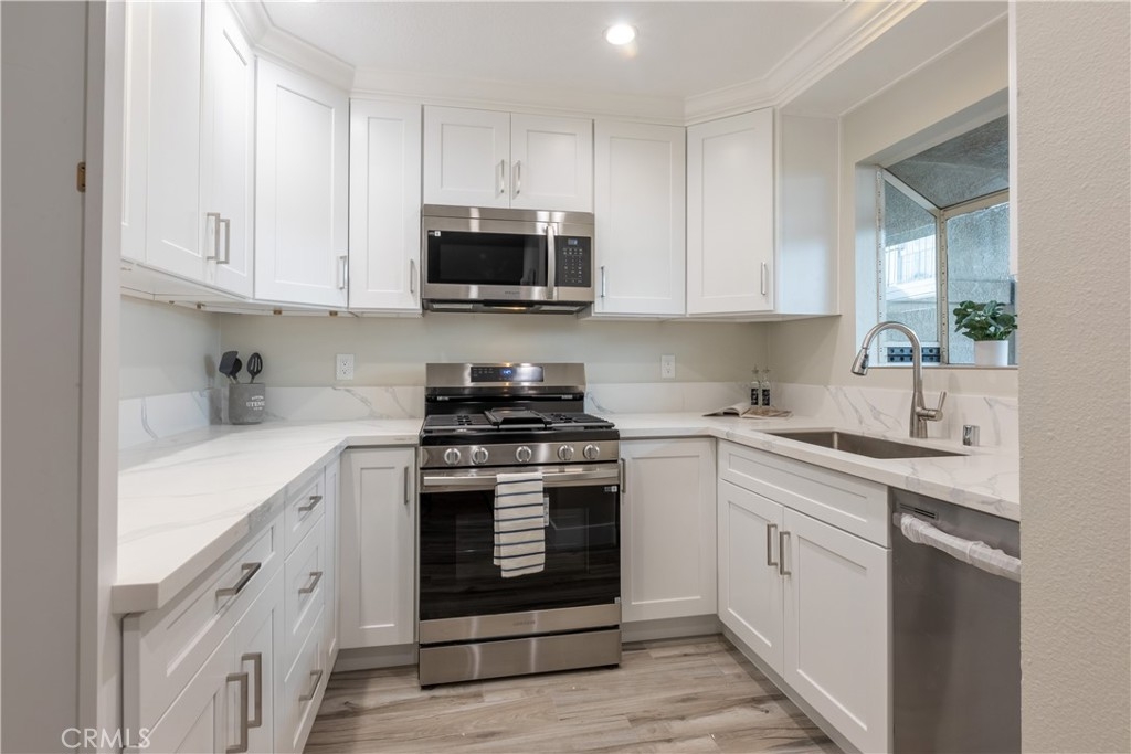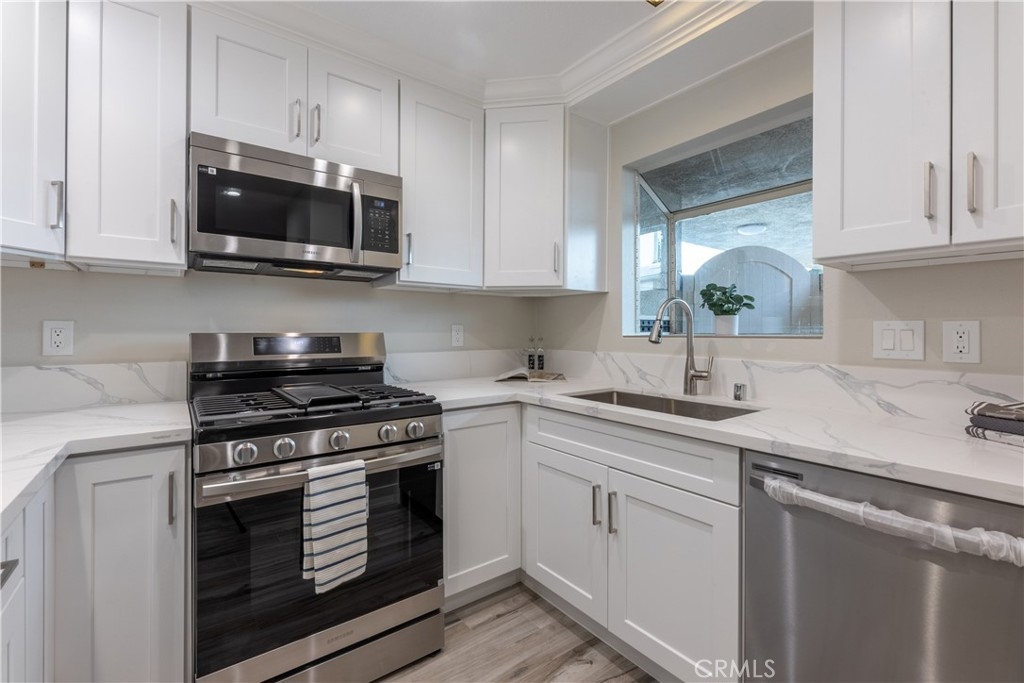 Large 3 bedroom 2 bath 1158 Sq. Ft. condo located in East Park Villas association. Home features newer Laminate, Tile flooring and Paint with a large private courtyard entrance, living room with fireplace, separate dining area and spacious updated kitchen and newer appliances are included. The primary bedroom has an en-suite bath while the 2 additional rooms share a nice sized bathroom, the unit is perfectly located in a small 2-story section with only one common wall. Washer and Dryer hookups in the unit. The association features guest parking, a pool and clubroom. The location is walking distance to restaurants, shops, and entertainment. It is very conveniently located near CSULB and a great revenue source for rental. The condo has just had an update with newer flooring, kitchen, some appliances, paint and so much more. It is Move in ready.