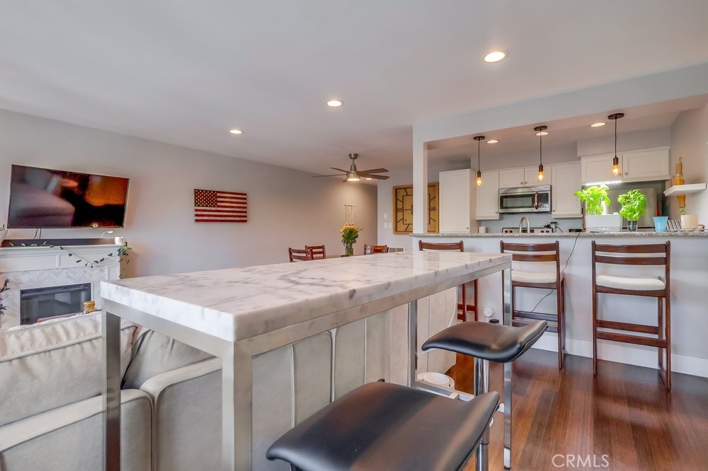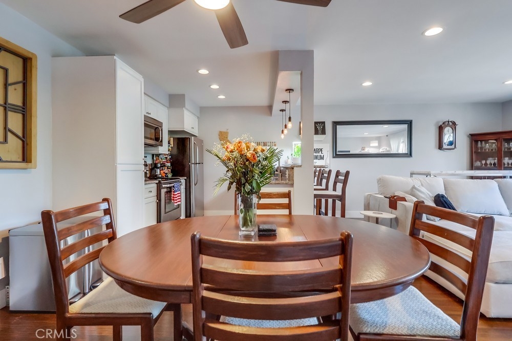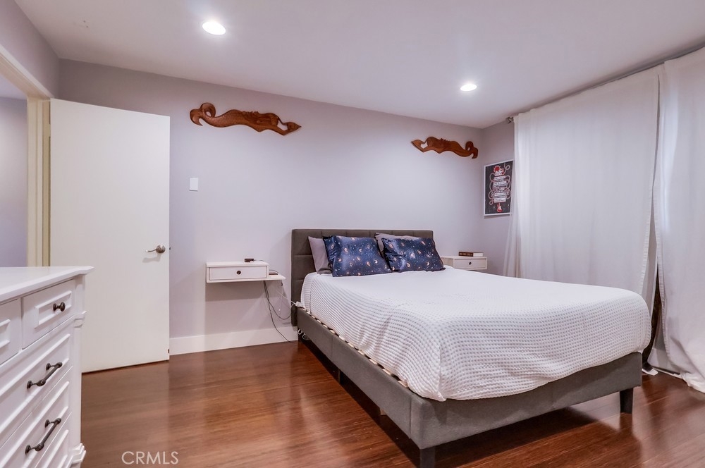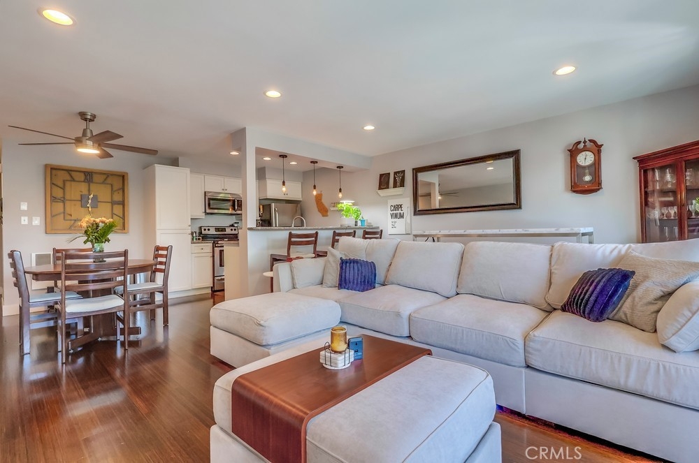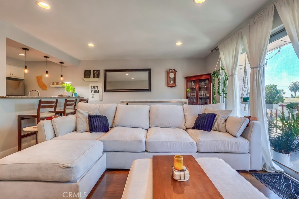 Beach living in this beautiful condo! This is a great community! Just a couple blocks to the sand! A large 1 bedroom with wall to wall closet, one full bath. Bamboo flooring throughout, recessed lighting/smart lights and fan, tankless water heater. Lots of natural light and a great ocean breeze with the sliders open. The long balcony extends across one wall to the next. Updated kitchen, with refrigerator, dishwasher, microwave, and stainless steel sink. Nice breakfast bar between kitchen and living room, separate dining room, and a large living room makes it easy to entertain guests. A secured private parking garage with one dedicated space as well as storage. Close to shopping and great restaurants. Don't miss out! This is a fantastic opportunity to buy in this much sought out neighborhood!