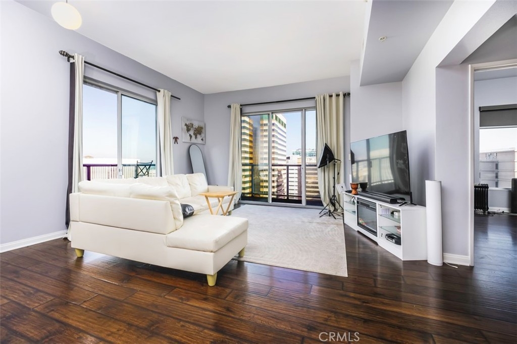 JUST REDUCED! Enjoy the luxury high-rise living from the 16th floor of the Aqua. Take in panoramic fountain and city lights views from this lovely North West corner unit looking over the fountain and Performing Arts Center. This popular model is light bright with views from every room and wrap around balcony. Spacious well designed modern condominium with large walk-in closet, central air conditioning system, full size washer and dryer inside of unit for your daily convenience. Comes with rare PRIVATE GARAGE and one extra parking space. The building offers 27/7 concierge, inside manager, basic Frontier internet, water, trash and sewer services included in HOA dues, fitness center, pool, sauna and a community room for gatherings, BBQ area, and business center. Best location in the vibrant Downtown Long Beach, close to gourmet restaurants, trendy shops, museums, beaches, Shoreline, The Pike, Convention Center, Aquarium and so much more.