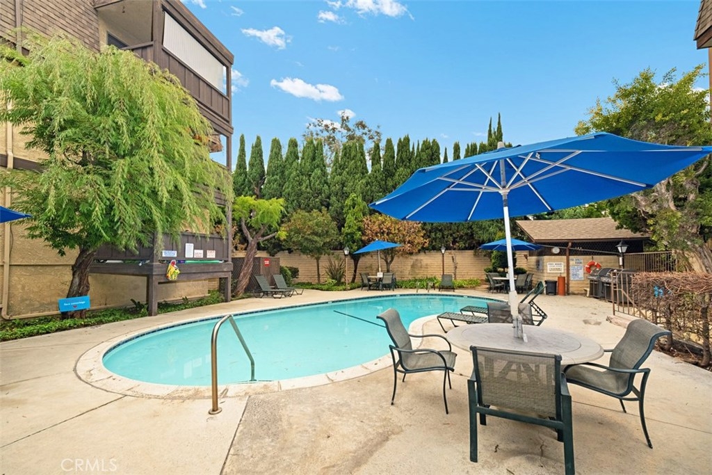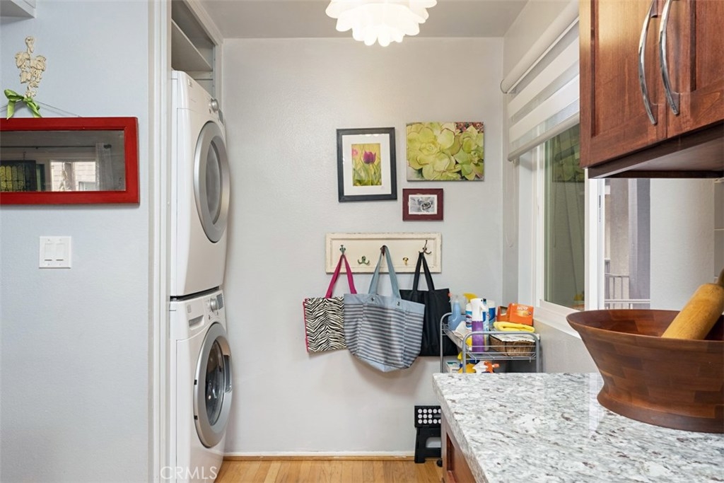 This top-floor, end-unit, spacious (nearly 1500sf) Virginia Village condo features 2 bedrooms and a bonus room along with 2 bathrooms, and the amenities you want in a home – from the huge master suite with spacious walk-in closet to the 3-car private garage! This home offers remodeled kitchen, inside laundry, hardwood floors throughout, private patio/balcony, central air conditioning, plantation shutters, double-paned windows, 3-car private garage with automatic garage door. The kitchen opens via granite peninsula to the large living area. The kitchen is thoughtfully laid out with generous storage, granite countertops, subway tile backsplash and matching appliances. The living room, and bonus room (originally a formal dining room and currently used as a home office), both open to the private balcony. The huge master suite has plenty of storage in both the approx. 10x10 walk-in closet (a MUST SEE!) and the master bath which features a long counter plus separate, additional vanity area. This secure community is pet-friendly and walkable to Bixby Knolls shops and eateries and features a peaceful pool and well-landscaped grounds. Access to the 3-car garage and the unit are easy via elevator or stairway.