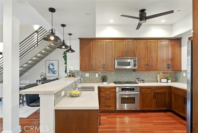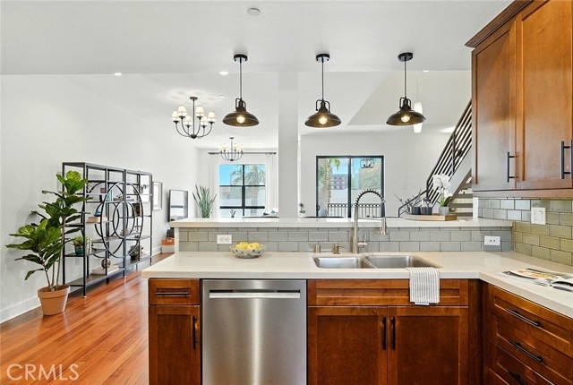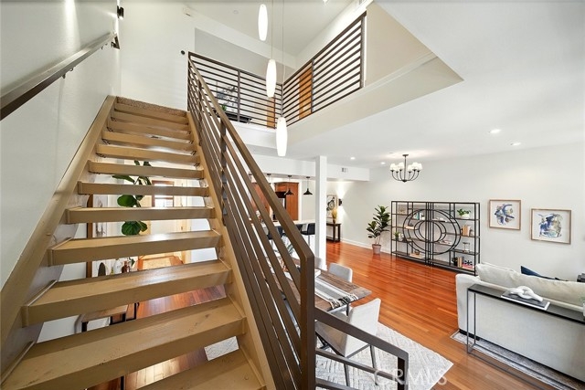Experience sophisticated living at desirable City Place Lofts in this 2-bedroom / 1.5-bathroom residence located in the East Village Arts District. Spanning 1,770 square feet, this top-floor unit with no neighbors above, offers an additional level of security, superior views, and open-concept living allowing the flexibility to create a custom-living experience. The lower level features living and dining areas with 9 ½ ft. ceilings, hardwood floors, and expansive near windows allowing an abundance of natural light and showcasing downtown views. Floor-to-ceiling sliding glass doors open to a private patio, perfect for relaxing, outdoor grilling, and dining. The kitchen features timeless solid-surface countertops with a breakfast bar, attractive tile backsplash, stainless steel appliances, and elegant wood cabinetry. The first floor is completed with a laundry room equipped with a washer and dryer, and a convenient powder room. Upstairs, brand-new carpeting has been installed throughout the bedrooms and hallway, and the generously-sized primary bedroom offers ample room for a work-space, dressing area, retreat, etc. The fully permitted second bedroom has recently been reconfigured and features a brand-new closet with organizers, updated electrical, and contemporary lighting. The primary bathroom is spacious with a sunk-in tub, separate shower, dual sinks, private water closet, and plenty of cabinetry. The unit has been freshly painted throughout, has central heating and air, and includes two dedicated side-by-side parking spaces. Residents enjoy amenities such as a well-equipped fitness center, community/recreation room, lobby, several sitting areas, elevator, visitor parking and controlled entry. Located near vibrant restaurants, entertainment venues, shopping, the Long Beach Convention & Entertainment Center, and waterfront attractions including The Aquarium of the Pacific, Shoreline Village, and so much more! Experience refined urban living in this exceptional home.