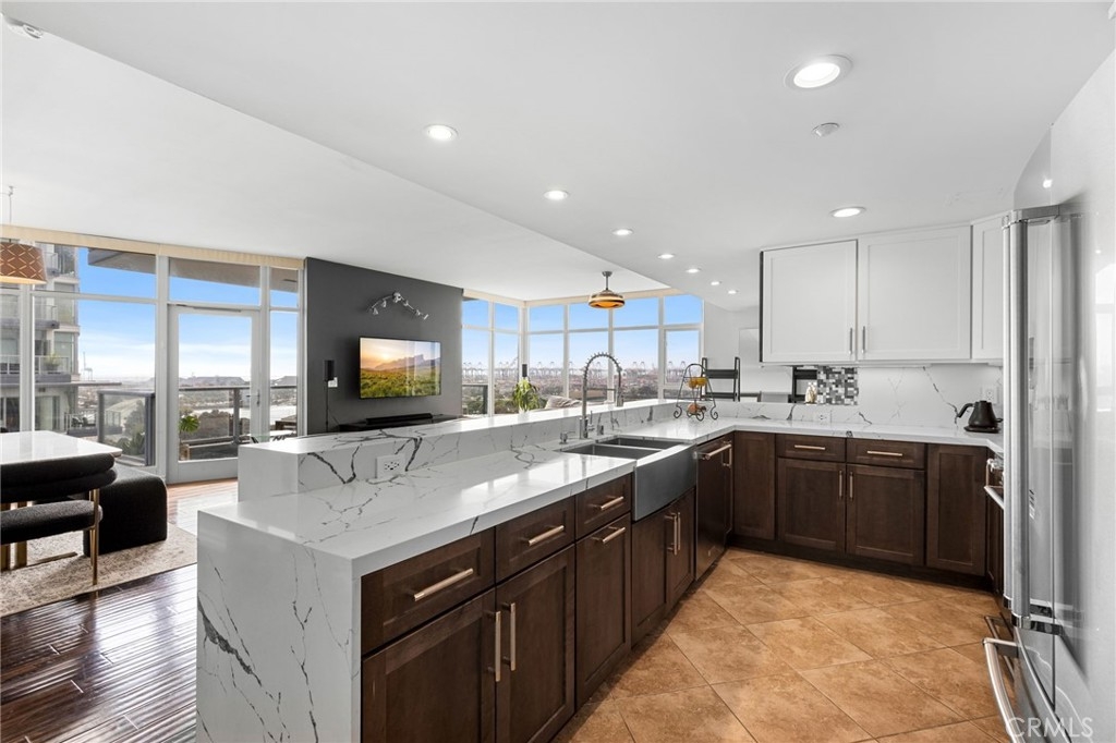 Discover a masterpiece of luxury living on the 16th floor of West Ocean, one of downtown Long Beach’s most prestigious towers along the harbor. This sophisticated three-bedroom, 2.5-bathroom residence spans 1,760 sq. ft. and has been flawlessly updated to offer a lifestyle of modern elegance with panoramic views that captivate from nearly every corner. Greeted by floor-to-ceiling windows, you’ll be immersed in natural light and drawn to sweeping, unobstructed vistas of Rainbow Harbor, Queensway Bay, and Shoreline Village. An open floor plan gracefully connects the spacious living and dining areas, while a private balcony offers a perfect retreat for enjoying ocean breezes and city lights. The gourmet kitchen is a chef’s delight with ample counter space, a raised bar top seating five, and a stylish mini bar, making entertaining effortless. Retreat to the serene primary suite, where breathtaking views and refined finishes create a tranquil oasis. For ultimate convenience, this home also includes an in-unit washer and dryer, generous storage closets, and two side-by-side parking spaces in the secure underground structure. Additionally, two adjacent storage units are available for purchase. West Ocean delivers an unparalleled suite of amenities, from a state-ofthe-art gym and a temperature-controlled wine room with personal lockers to an executive business center, conference room paired with a full kitchen, and an expansive lounge with a cozy fireplace. Outdoors, enjoy the resort-style heated pool and spa, multiple barbecue areas, and a large fireplace for those cozy social gatherings. Residents can also take pleasure in maximum peace of mind with 24-hour security all year round. Steps from The Pike and Shoreline Village, your new home places you at the heart of vibrant shopping, dining, and entertainment. Elevate your lifestyle with coastal luxury - welcome to West Ocean, where every detail inspires.