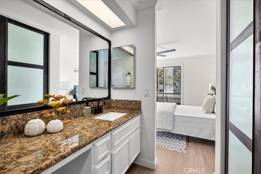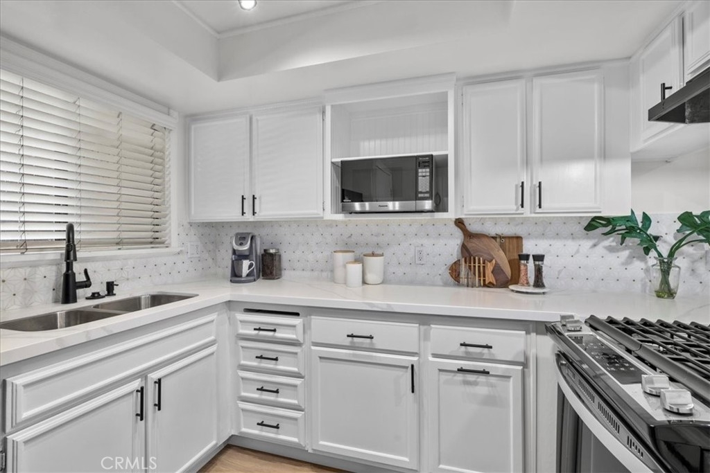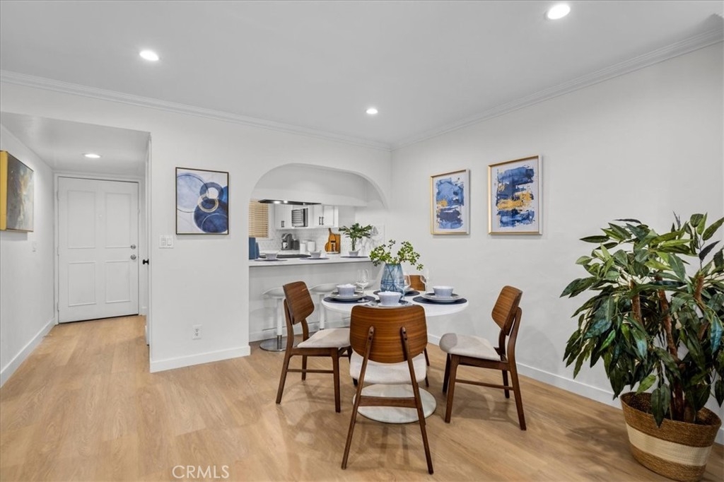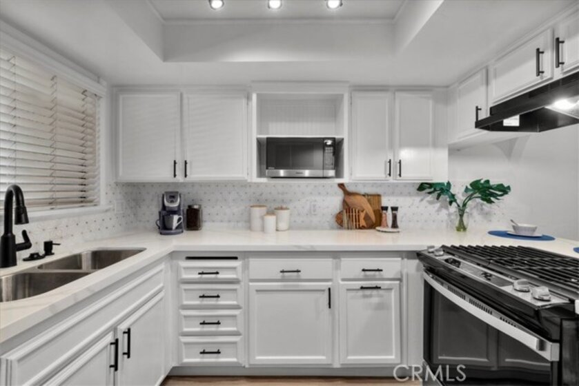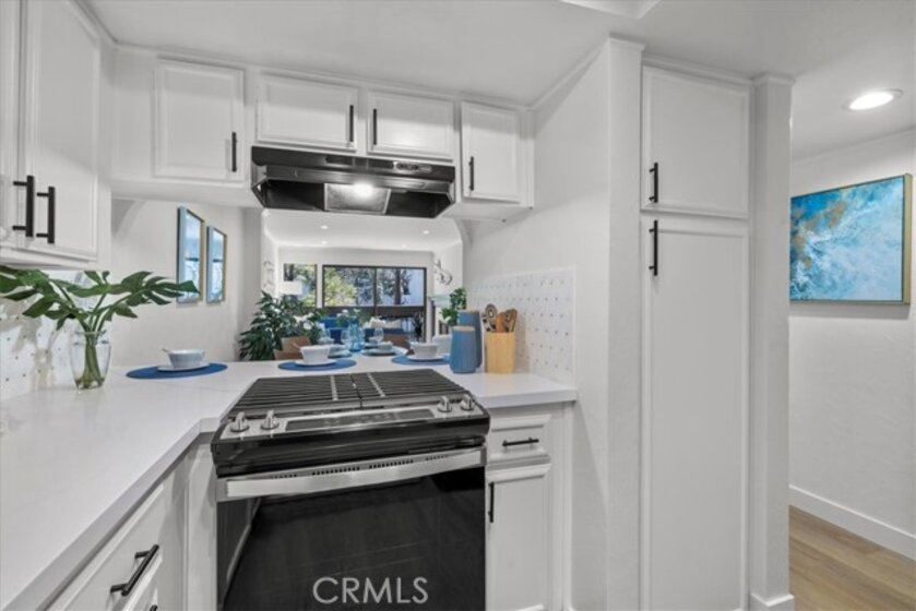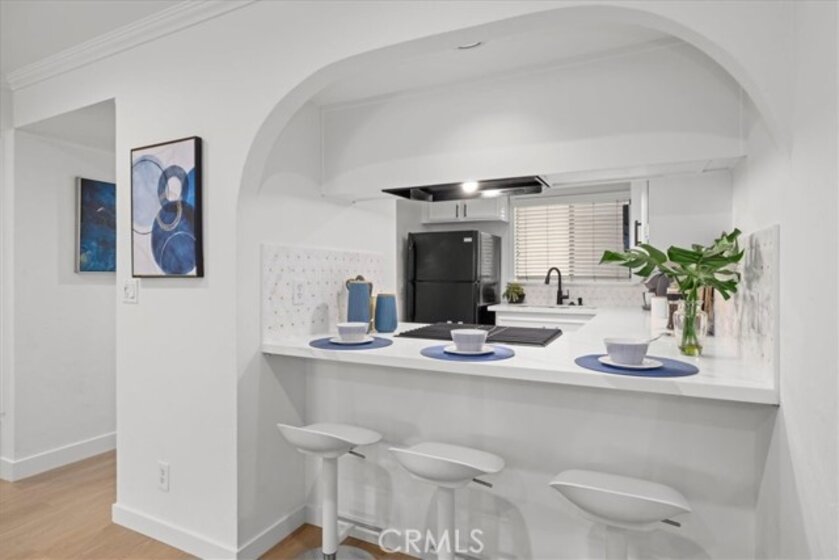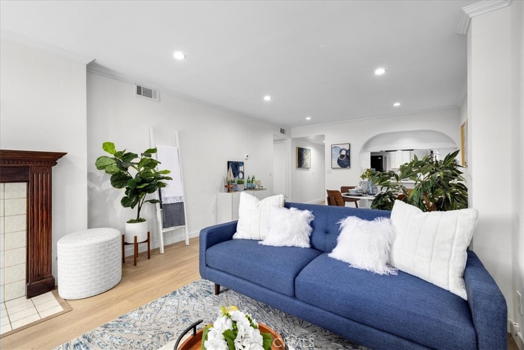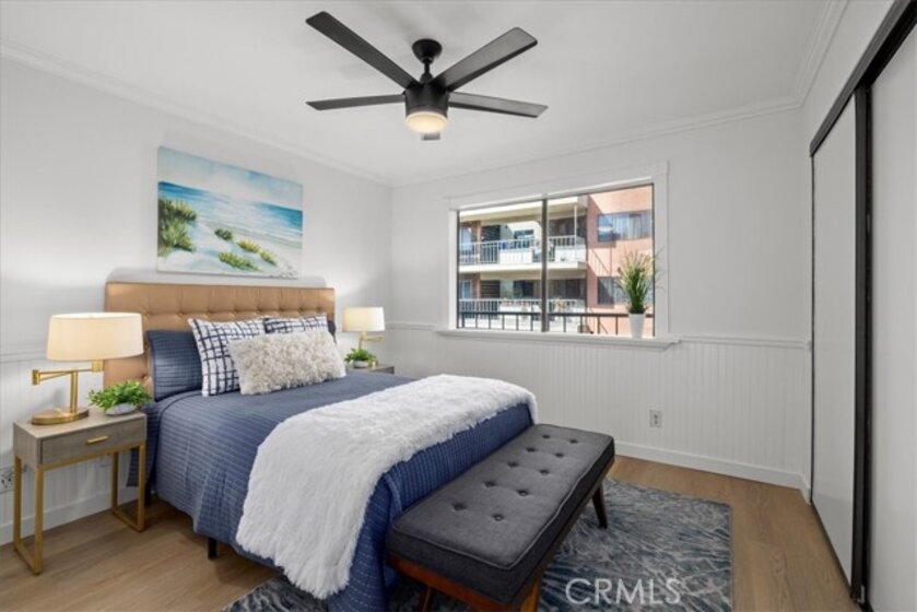 Full of style, natural light and an abundance of new upgrades, this turnkey condo is close to everything that people love in Long Beach. An open living area provides ample room for enjoyable entertaining by a fireplace, on a sunny south-facing balcony or in the dining area. In the kitchen, today’s most enticing amenities are led by new stainless steel appliances, quartz countertops, a full designer-tile backsplash, white cabinetry including a pantry, and a pass-through breakfast bar distinguished by a romantic archway. New wood-look luxury vinyl plank flooring graces the entire single-level residence, which extends approximately 961 square feet and hosts two bedrooms and two baths. Bedrooms are separated for maximum privacy, with the primary suite offering direct access to the balcony, a large window, two closets and a sit-down vanity with granite countertop. Further appointments include a side-by-side washer and dryer, crown molding, wainscoting in the secondary bedroom, smooth ceilings with recessed lighting, ceiling fans, central heating and air-conditioning, and subterranean parking. The atrium-style Chestnut Court building features elevator access to all floors and a central patio with BBQs. Residents enjoy an outstanding location in the vibrant, historically designated Drake Park/Willmore City District near Long Beach’s treasured East Village Art District, Pine Street, Willmore Heritage Gardens, Long Beach Aquarium, bike paths, miles of beaches, Blue Line rail service, fabulous restaurants, trend-setting shops, and easy access to the 710 Freeway and Vincent Thomas Bridge.
