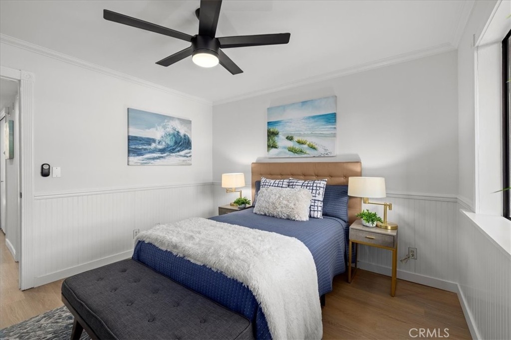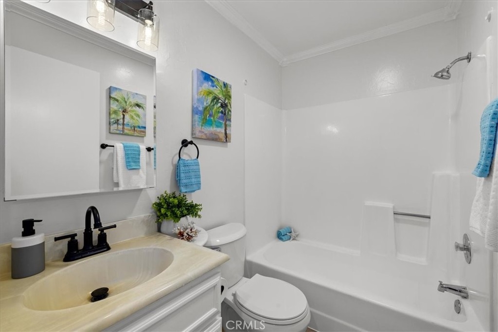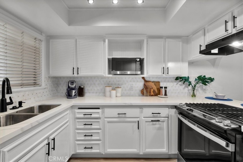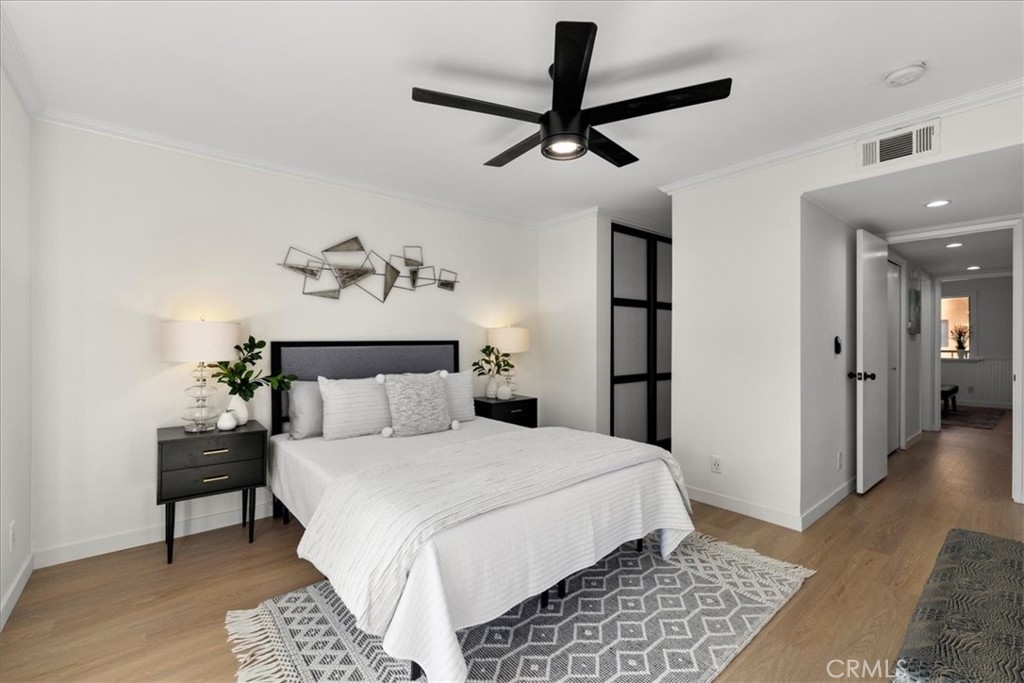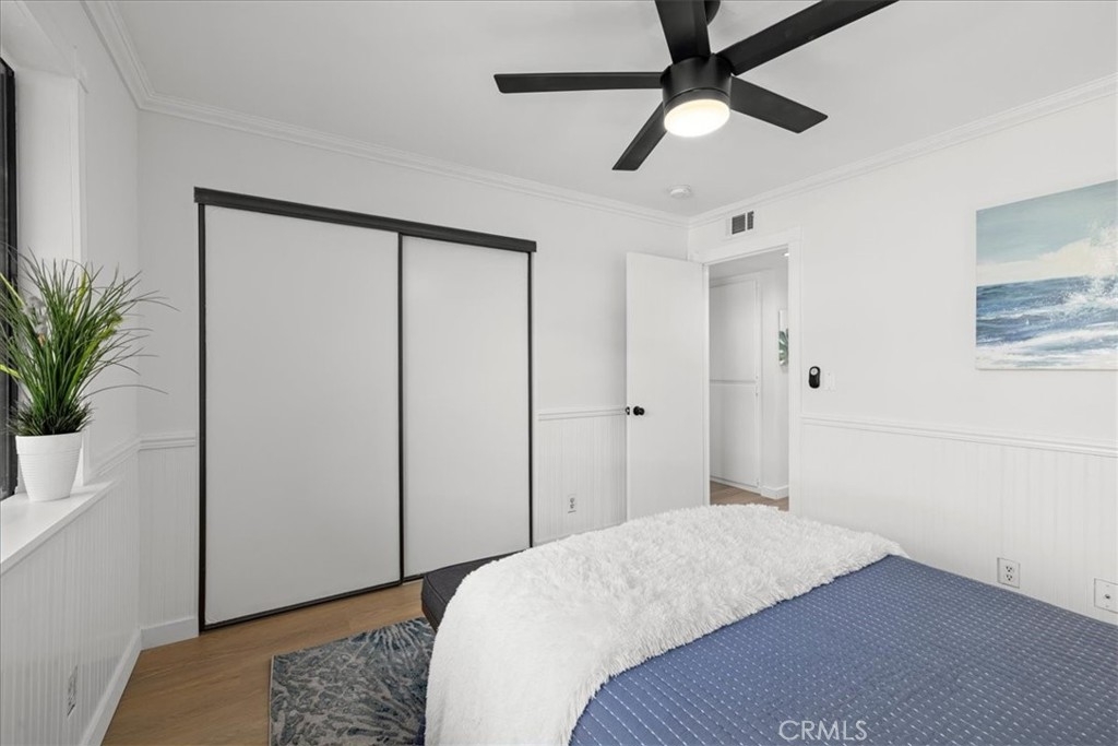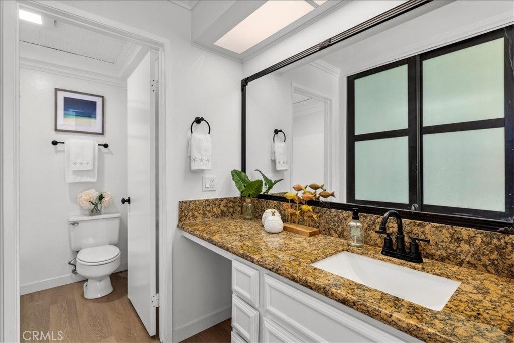 Full of style, natural light and an abundance of new upgrades, this turnkey condo is close to everything that people love in Long Beach. An open living area provides ample room for enjoyable entertaining by a fireplace, on a sunny south-facing balcony or in the dining area. In the kitchen, today’s most enticing amenities are led by new stainless steel appliances, quartz countertops, a full designer-tile backsplash, white cabinetry including a pantry, and a pass-through breakfast bar distinguished by a romantic archway. New wood-look luxury vinyl plank flooring graces the entire single-level residence, which extends approximately 961 square feet and hosts two bedrooms and two baths. Bedrooms are separated for maximum privacy, with the primary suite offering direct access to the balcony, a large window, two closets and a sit-down vanity with granite countertop. Further appointments include a side-by-side washer and dryer, crown molding, wainscoting in the secondary bedroom, smooth ceilings with recessed lighting, ceiling fans, central heating and air-conditioning, and subterranean parking. The atrium-style Chestnut Court building features elevator access to all floors and a central patio with BBQs. Residents enjoy an outstanding location in the vibrant, historically designated Drake Park/Willmore City District near Long Beach’s treasured East Village Art District, Pine Street, Willmore Heritage Gardens, Long Beach Aquarium, bike paths, miles of beaches, Blue Line rail service, fabulous restaurants, trend-setting shops, and easy access to the 710 Freeway and Vincent Thomas Bridge.