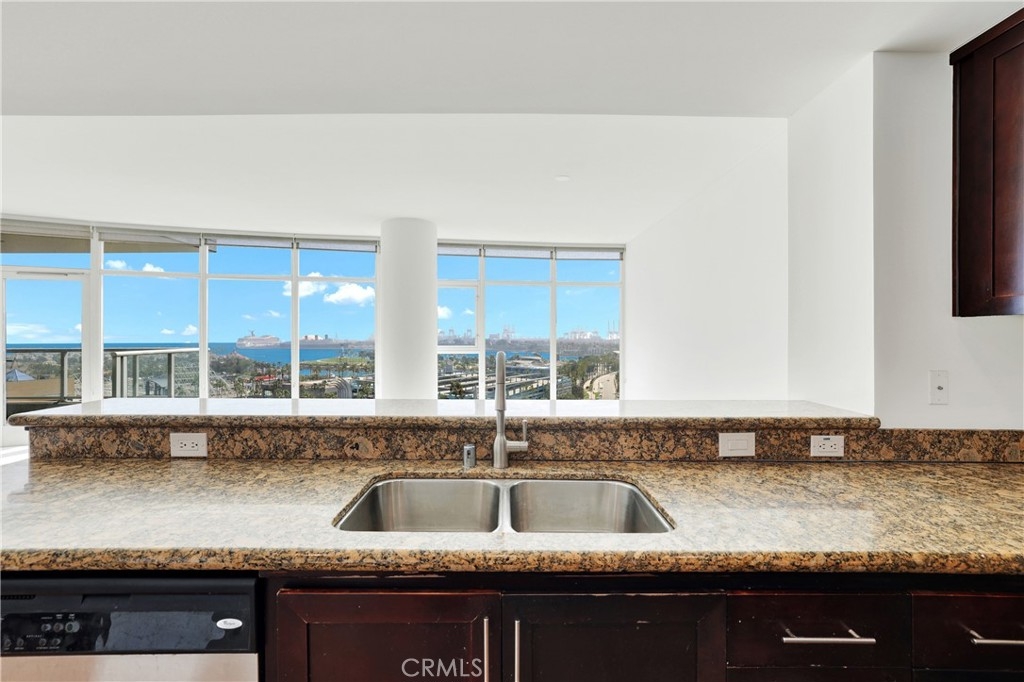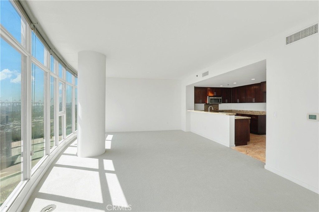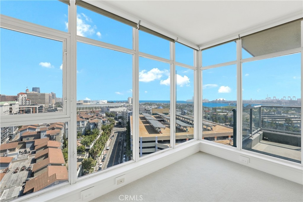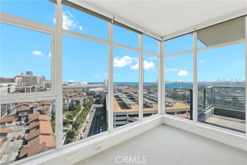 Welcome to Unit 1203 at West Ocean Tower, a modern high-rise condo in the heart of Downtown Long Beach. This 2 bedroom, 2 bathroom home offers 1,410 square feet of comfortable living space on the 12th floor. This southeast-facing corner unit is filled with natural light from floor to ceiling windows, offering beautiful city coastal views during the day and city lights at night. The home features fresh, light-colored carpet in the living room and bedrooms, with neutral porcelain tile throughout the entry, kitchen, hallways, and bathrooms. Granite countertops are carried through both the kitchen and bathrooms for a clean, consistent look. The private balcony is a great space to relax, entertain, or enjoy views of the Queen Mary fireworks. This spacious layout includes a den for added value. Both bedrooms are large in size that offers reasonable closet space. Home is well equipped with storage space. Additional features include stainless steel appliances, in-unit washer and dryer, and central heating and air. The HOA includes gas, water, and central heating and air. Residents enjoy amenities such as two fitness centers, a pool, sauna, and 24-hour security with concierge service. Located close to the ocean, Shoreline Village, The Pike, restaurants, and entertainment—everything you need is just minutes away.