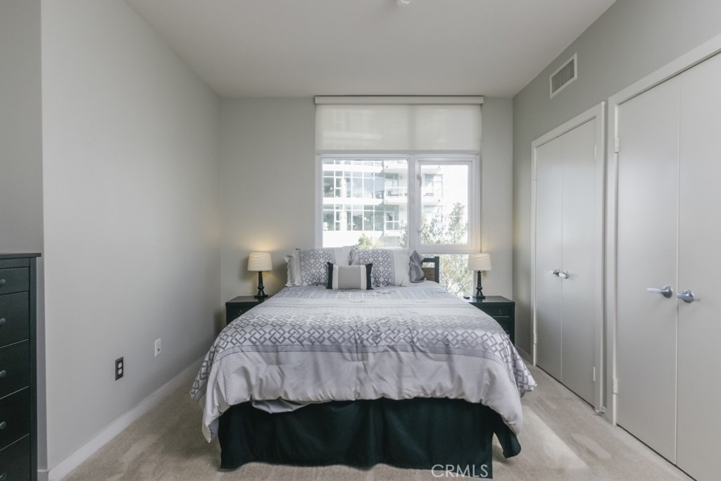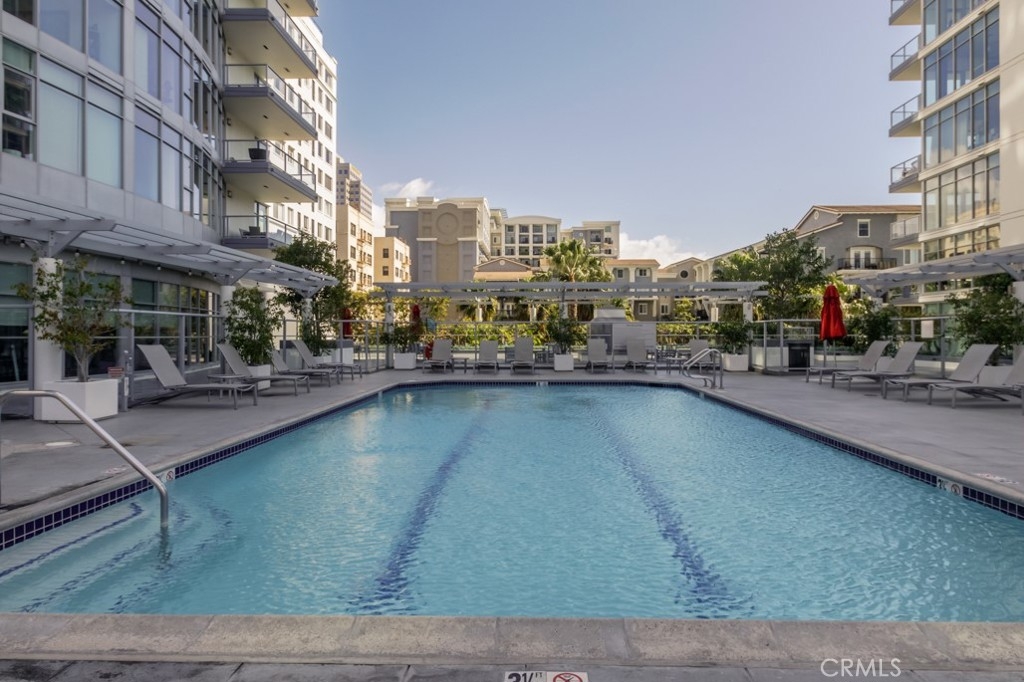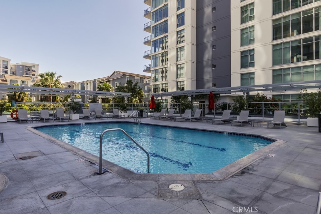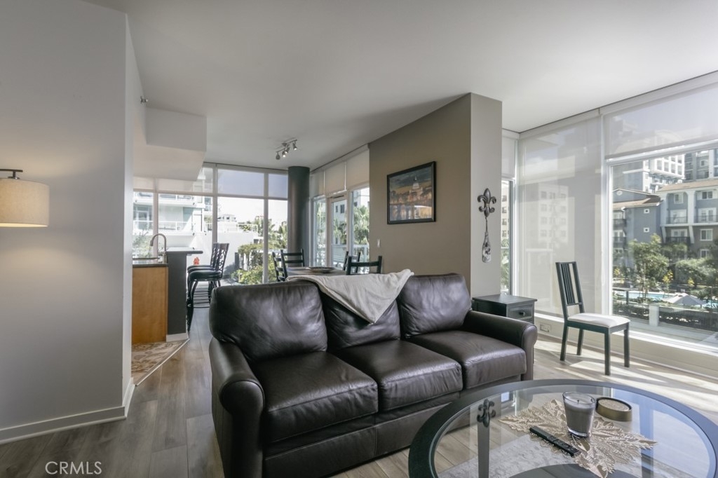 Significant price adjustment has made this beautiful condominium an exceptional value!! Located at the prestigious West Ocean Community this one-bedroom condo is nearly as large as many two-bedroom units. The ample rooms and generous balcony give you the feeling of being in a substantial home. This corner unit with wall-to-wall, floor to ceiling windows that showcase views of swimming pools and palm trees make you feel like you're on vacation. The balcony has plenty of room for outdoor furniture serving as a natural extension of your living space. Great for entertaining! Upgraded with modern designer flooring throughout the living area, kitchen and bathroom. Large closets, A/C and in unit laundry meets your expectations of luxury living. West Ocean is one of Long Beach’s premier high-rise communities with a large pool, spa, steam room, bicycle room, temperature-controlled wine lockers, multiple workout facilities and bar-b-que areas, community rooms and first-class concierge service.