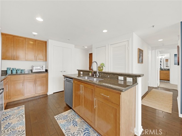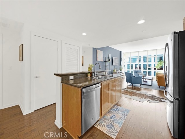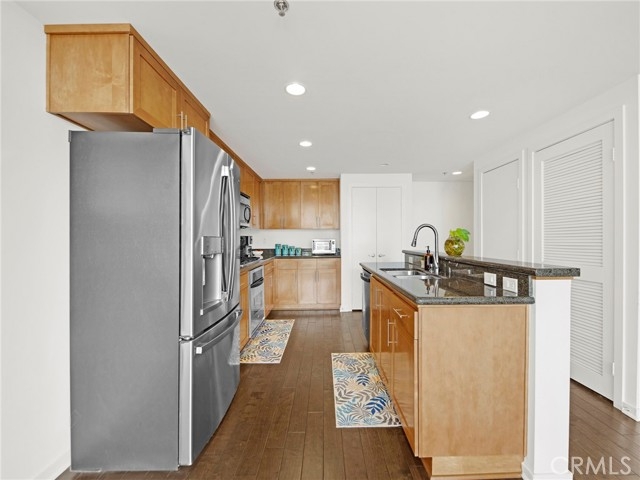 Welcome to West Ocean Towers, a prestigious address offering a harmonious blend of sophistication, security, and convenience. With on-site management and a 24-hour concierge, every detail of this residence is designed to provide peace of mind and a truly elevated urban lifestyle. This spacious two-bedroom, two-bath home is bathed in natural light from oversized windows in every room. Step onto your private balcony to savor refreshing ocean breezes and breathtaking sunsets. Inside, beautiful hardwood floors create a warm, inviting foundation, while the open-concept kitchen features stainless steel appliances, rich wood cabinetry, and granite countertops—perfect for both casual meals and elegant entertaining. Additional comforts include central air and heat, an in-unit stackable washer and dryer, two separate parking spaces (not tandem, one is oversized), and tasteful designer finishes throughout. Residents of West Ocean Towers enjoy an exceptional suite of amenities, including multiple fitness facilities and business centers, multipurpose club room with a full kitchen and climate-controlled wine storage locker, a banquet room, pool, spa, sauna, multiple barbecue areas, with various lounging options, and an outdoor fireplace. There is designated a deeded storage space along with a bike room for storing along with air and tools available. A guest suite is also on premises for a rental fee for the residents’ guests to use. All curated for refined coastal living in this bike-friendly city. The building is located close to all of that Long Beach has to offer; performing arts center, convention center, arts district, downtown, Shoreline Village/Pier, Aquarium of the Pacific, and the Queen Mary.