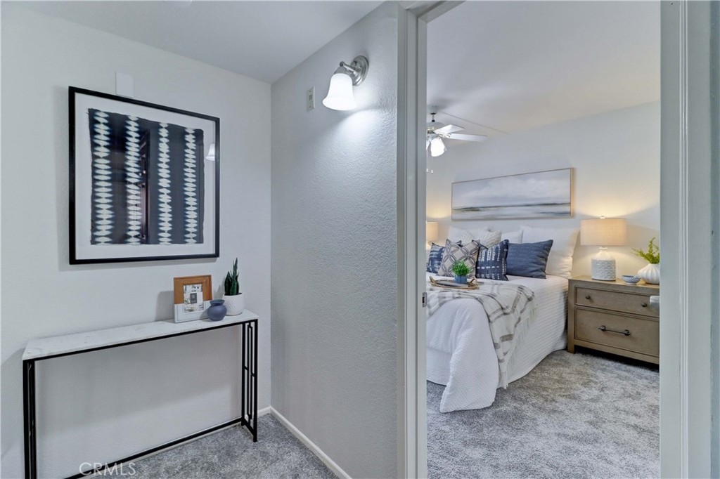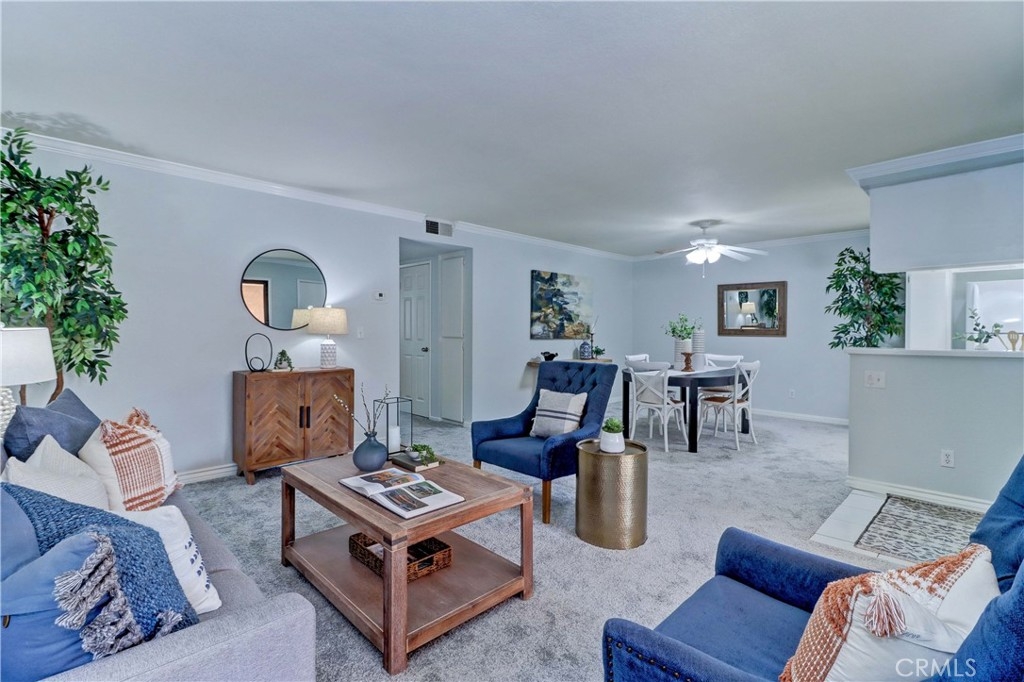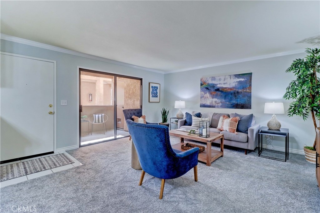 GORGEOUS TWO BEDROOM CONDO! You'll fall in love with this fabulous 2 Bed/2 Bath home nestled in a great location on the second floor of the Circle View community. Enter to an open floor plan complete with smooth ceilings, crown molding, and NEW CARPET that extends into the hallway and bedrooms. The culinary artist will appreciate the light and bright kitchen with recessed lighting, abundant storage, gas cooktop range, new nickel finish knobs, and upgraded "HI MACS" solid surface counters. The large dining area can accommodate 6-8 guests, perfect for entertaining. When you need fresh air, grab a bottle of your favorite beverage and dine al-fresco on your romantic balcony! Both bedrooms incorporate large closets with mirrored wardrobe doors and en-suite baths. The bathrooms are full size and feature shower over tub and ceramic tile flooring. Inside Laundry is conveniently located in the hallway and can accommodate a side-by-side washer & dryer. Additional highlights include NEW PAINT, CENTRAL AIR & HEAT, linen storage, and TWO COVERED PARKING SPACES! Circle View is a gated community with an elevator, pool, spa and intercom system: water, trash and sewer are included in the monthly HOA dues. Great location near the Long Beach traffic circle. Quick access to freeways, restaurants, retail, grocery, popular gyms, beaches, golf, hiking trails, and coffee houses! FHA approved. This one is sure to impress!