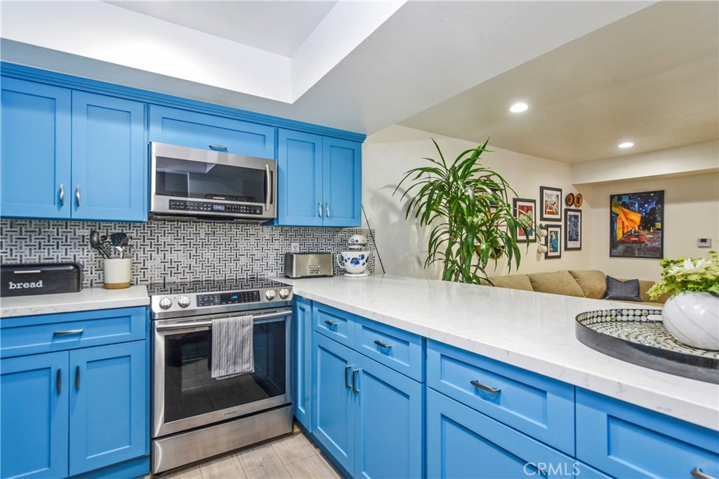 Spacious highly upgraded full of light one bedroom unit that is move-in ready. The kitchen comes with high-end fully upgraded Samsung Stainless Steel appliances that include a built-in microwave, glass top electric stove, and french door refrigerator. New custom quartz countertop, designer tile back splash, custom slide out drawer cabinets, and recessed lighting. Quality wood laminate flooring, custom doors, highly upgraded new double paned windows and sliding glass doors with custom shades, and recessed lighting throughout. Direct access to a private balcony. Full sized high-end Samsung washer and dryer conveniently located with in unit. New Air Conditioner and Hot Water Heater. Custom build California Custom Closet and unbelievable amount custom storage cabinets in bedroom. Fully upgraded bathroom with all new fixtures, custom cabinets with quartz counter top and custom tile walk-in shower. This unit comes with one parking space and private storage cage. Additional parking available for lease from the HOA at a minimal cost. This Villa Pacifica controlled access gated community includes a pool, spa, BBQ area with tables, and private community dog park. Location is 5 min walking to several grocery stores, restaurants, health club, coffee shops, and endless other retail businesses. This building is VA approved.