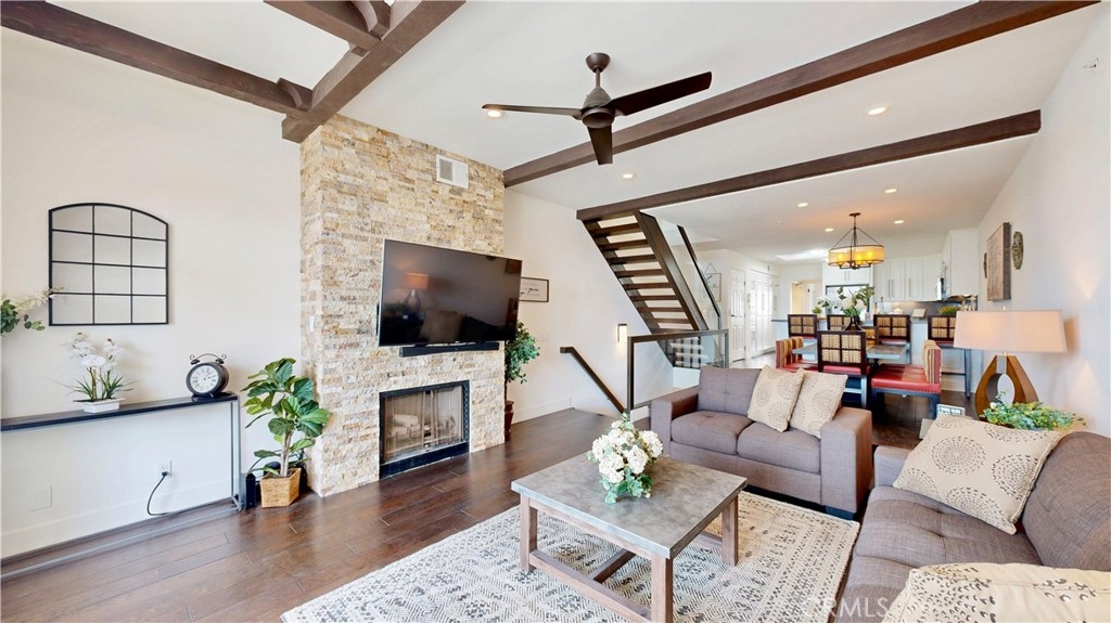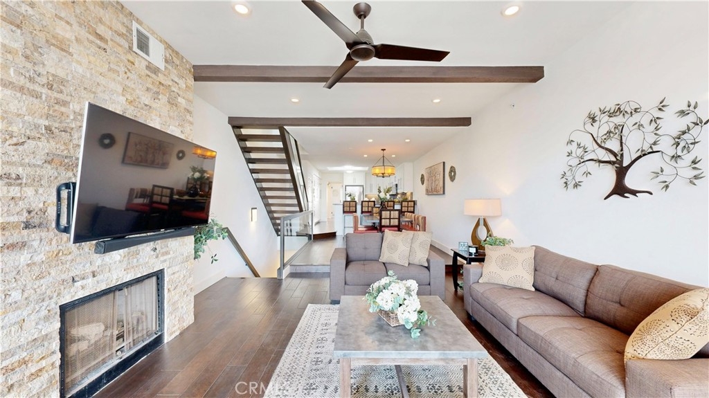 Experience the elegance of coastal living in this rare tri-level residence along Ocean Boulevard in Belmont Shore. Recently refreshed with new paint, this two bedroom, three bathroom home offers over 2,000 sq. ft. of thoughtfully designed living space, where modern comfort meets timeless style. The home unfolds across three beautifully appointed levels, all connected by a private elevator for ease and convenience. The entry level welcomes you with a spacious living room and a dramatic oversized wine wall perfect for collectors or for hosting in style. Upstairs, the second floor serves as the heart of the home, featuring a warm living area with a striking stack-stone fireplace, a gourmet kitchen with quartz countertops and stainless steel appliances, and an elegant dining space. This level also includes a generously sized bedroom with its own balcony and adjacent full bathroom, ideal for guests or flexible living. The top floor is dedicated to the expansive primary suite, complete with its own fireplace, private balcony, walk-in closet, and a spa-inspired bathroom with dual vanities, soaking tub, and separate shower. Multiple balconies throughout the home invite in refreshing ocean breezes and frame golden sunset views. For added privacy and convenience, a gated garage entrance provides direct access to the residence’s private two-car garage. Just steps from the sand and within walking distance to acclaimed restaurants, cafés, and boutique shops, this home offers more than a place to live, it offers a lifestyle. Surrounded by luxury residences in one of Long Beach’s most desirable coastal communities, this is a rare opportunity to own an inviting retreat by the sea.