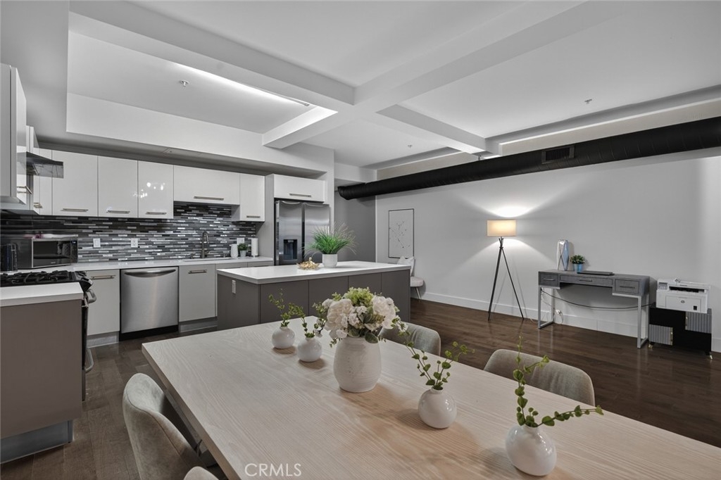 Urban Loft Living Meets Flexible Design Potential at Newberry Lofts on Historic Pine Avenue. Step into this expansive 1,140 sq. ft. open-concept studio loft in one of Downtown Long Beach’s most desirable boutique buildings. With soaring ceilings, oversized windows, warm laminate wood flooring, and a spacious walk-in closet, this home delivers the modern loft aesthetic buyers love—plus rare potential to create a true 1- or even 2-bedroom layout. The generous floor plan allows for easy addition of walls or partitions to customize the living space to fit your lifestyle, whether you prefer a private bedroom, a creative studio, or a hybrid live-work environment. The sleek kitchen features quartz countertops, a large island, gas range, stainless appliances, and an open flow ideal for entertaining. The full bathroom includes a tub/shower combination and ample storage. Enjoy the convenience of in-unit laundry, central AC, secure controlled access, and gated subterranean parking. Located in the vibrant heart of Downtown Long Beach, Newberry Lofts places you just steps from Pine Avenue’s best restaurants, cafés, galleries, nightlife, the Metro A/Blue Line, Shoreline Village, The Pike, and the waterfront. This is walkable, car-optional living at its best. Whether you're seeking a stylish urban retreat or a flexible layout you can customize, this unique loft offers exceptional value, design potential, and an unbeatable location. Welcome to Newberry Lofts—where modern convenience meets historic charm.