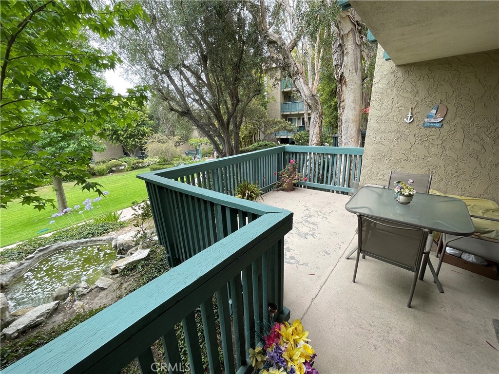 Welcome to your dream home in the highly desirable Stoneybrook Villas community! This beautifully maintained first-floor condo offers a warm and inviting interior, featuring a neutral palette ready for your personal touch. Step into a spacious living room filled with natural light, where expansive glass sliders open to an oversized covered balcony—perfect for outdoor dining or relaxing to the sounds of tranquil brooks and lush greenbelt views. The kitchen is a chef’s dream, featuring stylish wood cabinetry, a breakfast bar, and ample prep space, ideal for cooking and entertaining alike. Unwind in the cozy bedroom, which boasts its own outdoor access and a generous walk-in closet. The bathroom is designed for comfort, with a shower/tub combo for relaxation and convenience. As part of Stoneybrook Villas, you’ll have access to resort-style amenities, including a sparkling pool, landscaped gardens, and scenic greenways. Plus, you're only minutes from shopping, dining, entertainment, and the beach. This condo is a rare find—schedule your tour today and envision your new lifestyle in Stoneybrook Villas!