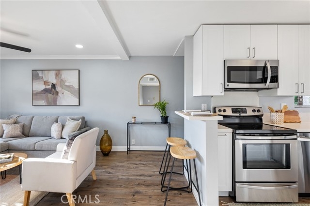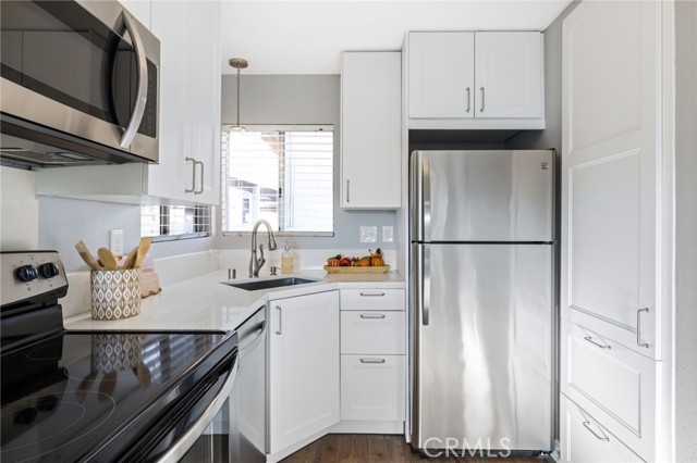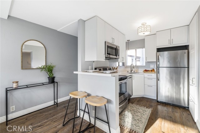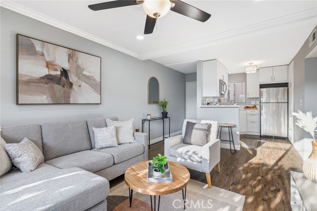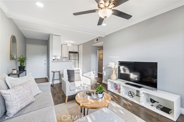 This Complex is FHA & VA Approved! Welcome to 460 Golden Avenue, unit 209. This 1 bedroom/1 bathroom end unit has only 1 shared wall and no one below, featuring a single attached garage with an additional private storage cabinet, entrance to the community and an automatic door opener for hassle-free parking. This completely remodeled unit has a private balcony, luxury highlights of crown molding in the living room and bedroom, completely remodeled kitchen with quartz counter tops, soft closing drawers & ample number of cabinets for all of your kitchen essentials. The layout of this unit is perfect with efficient use of space and storage with a additional kitchen pantry with pull out drawers for easy access, an ensuite walk-in closet in the bedroom & 4 cabinet linen closet in the hallway. Enjoy the newly installed mini-split Air Conditioner & recessed lights in the living room, new paint & updated floors throughout, living room ceiling fan, all appliances & in the hallway closet washer/dryer stackable included. Refreshing highlights in the bathroom include a window, bathtub refinish, new shower spout, handle, shower head, tub drain and overflow cover, new double handle faucet & new light fixture. The complex has an updated elevator for ease of access throughout the community. Ceasar Chavez park is just across the street, located close to downtown, Ride your bike on the Long Beach bike path to the beach just minutes away, a couple of blocks to an elementary school, convenient access to the 710 freeway, public transportation, blocks to Pine Avenue restaurants and entertainment, close to The Pike, Queen Mary & Aquarium of the Pacific. HOA includes Earthquake Insurance, water, and trash along with common area upkeep. Pet friendly community. This unit is ideal for urban living, call & schedule showing today!