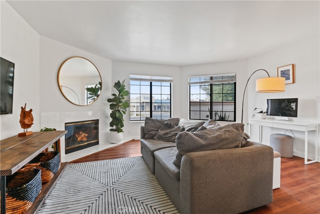 Highly sought after condominium near CSULB & Traffic Circle. Enjoy this beautiful 2 bedroom/2 bath 1st floor corner unit condo in lovely Los Altos neighborhood. Situated in the front of this 12-unit complex you have access to bright sun lighted rooms and that breezy feeling throughout. Lots and lots of windows and the open living room floor plan includes a full dining area, fireplace and access to a private patio. This home features an updated kitchen 2021, luxury vinyl flooring, double sink, new dishwasher, stainless steel fridge, microwave and gas stove. This units comes with 2 covered garage spaces and bonus storage area. There's 4 guess parking spaces in front of complex. Master bedroom has barn style doors opening to master bath and walk in closet. This well maintained complex has secured gated entry and an on site laundry facility. Close to Cal State Long Beach, Recreational park & golf course, Traffic circle restaurants, cafes, banks, gyms, and stores.