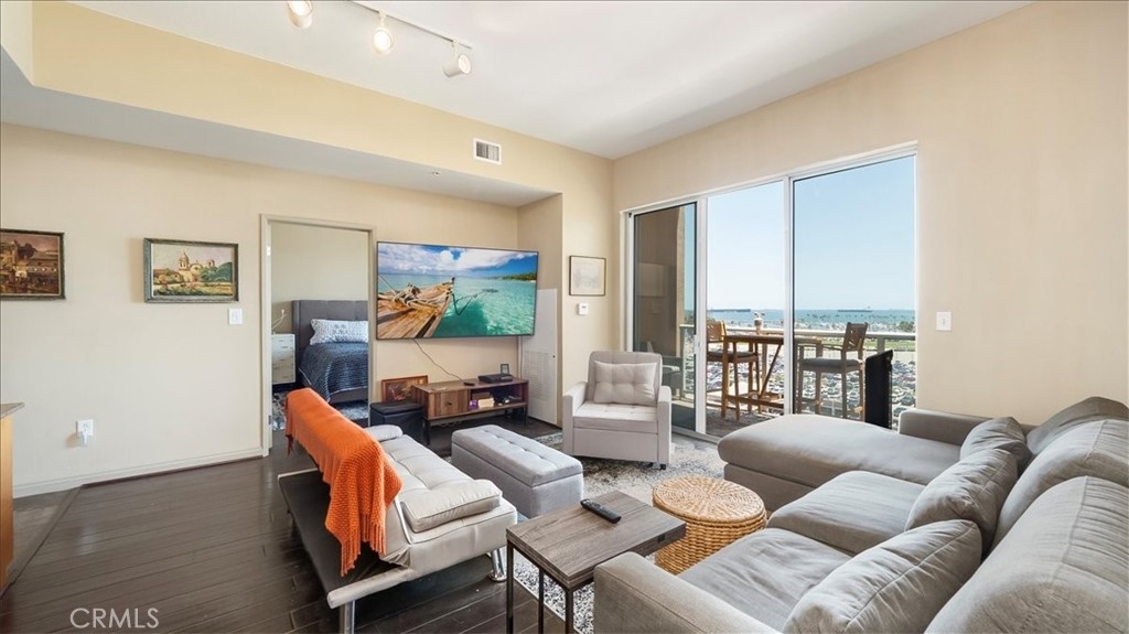 Breathtaking open air ocean Views of the beautiful Pacific Ocean! This beautiful condo has 10-Foot High Ceilings with beautiful hardwoods in the living room and both bedrooms. Slate tile in the kitchen, Both bedrooms offer walk-in closets, and the main room has suite bathroom. The kitchen boasts Granite Counter- Tops & all appliances including an in-unit Laundry Room w/full size washer/Dryer. For Your Comfort there is Central AC & Heating. Stunning Views from living room and bedrooms, 2 Private Balconies Secure Gated I Assigned Parking Space in the underground garage. HOA monthly fees includes Water, 24/7 Security Concierge, Fitness Center & Sauna, club Room with & Business Centers high speed internet through Frontier. Enjoy the short distance to the beach, miles of biking trails, the metro lines, local restaurants and shops. Night life & entertainment venues including the Terrace Theater with the dancing fountains. the Pike. the cinema. Hast Village and so much more!