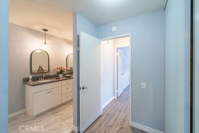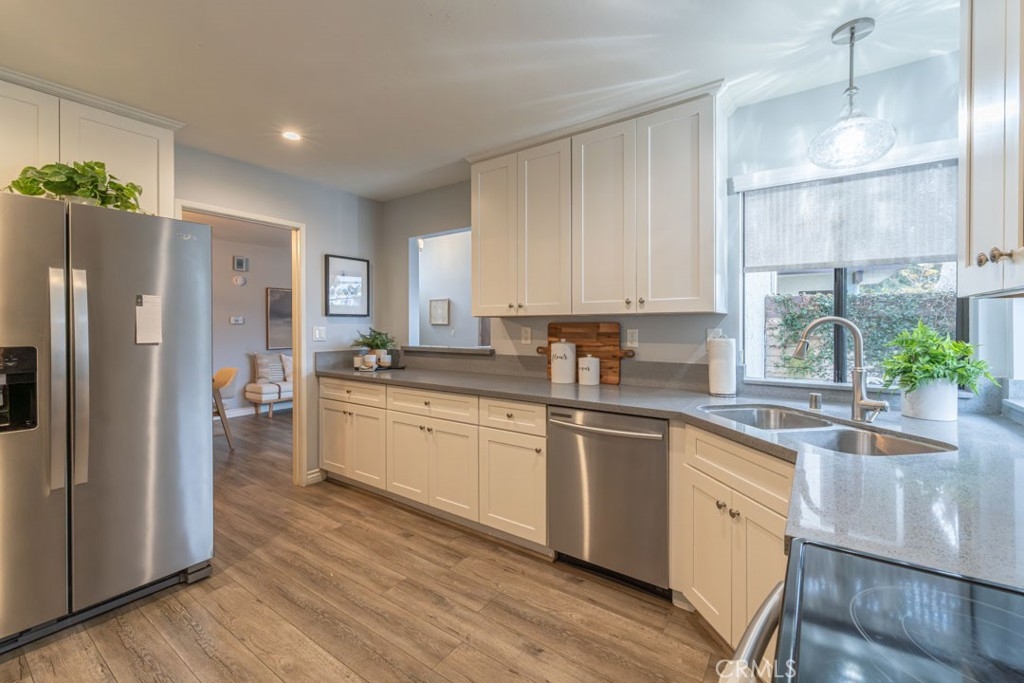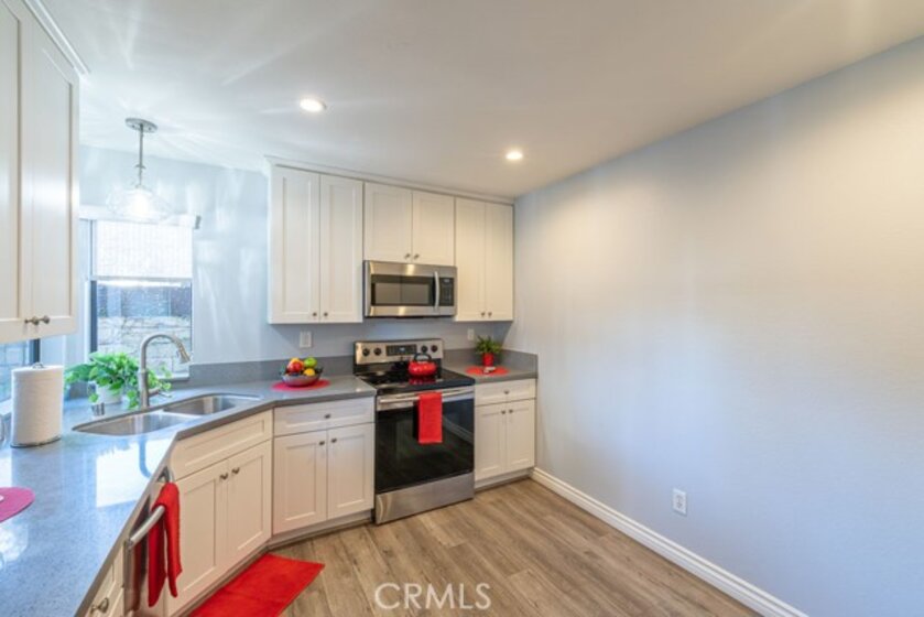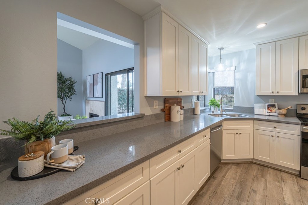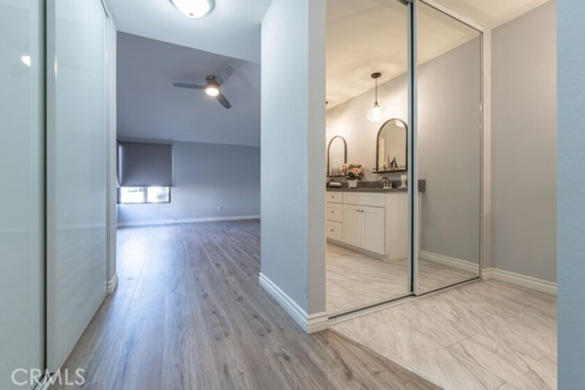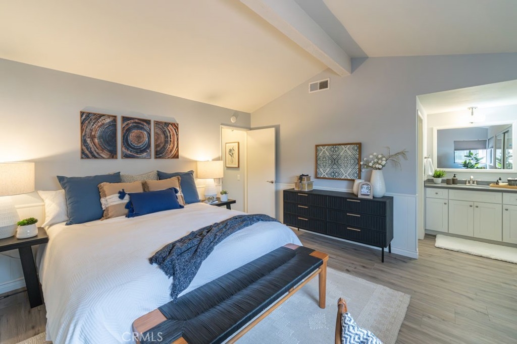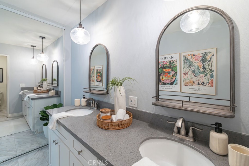 Discover this pristine and tastefully remodeled townhome featuring two spacious primary suites and three bathrooms, located in one of Los Altos’ best-kept secrets — The Fountains. This is truly a special community — the perfect find for those seeking the look and feel of a single-family home with the convenience and economy of a townhome. As you enter the gated development, you’ll immediately notice its beauty, meticulous upkeep, peaceful atmosphere, and the strong sense of pride shared by its residents. Inside, soaring 15-foot ceilings create a rich and comfortable feel. The bright and airy living room features a cozy fireplace and an oversized sliding glass door that opens to a private patio, perfect for relaxing and enjoying blue skies or entertaining guests. The open dining area flows seamlessly into the updated kitchen, which features dual windows overlooking the patio for effortless summer gatherings. Both primary bedrooms boast vaulted ceilings, generous closet space, and their own private bathrooms. The home has been freshly painted throughout and features new bedroom flooring, upgraded lighting fixtures, and modern window coverings in both suites. Additional conveniences include central A/C and heating, along with a direct-access two-car garage offering washer and dryer hookups and ample storage space. Enjoy resort-style living with a newly remodeled pool, two spas, clubhouse, tennis and pickleball court, and beautifully landscaped grounds highlighted by seven tranquil fountains. Ideally located within walking distance to the Los Altos Shopping Center, restaurants, entertainment, and CSULB, this home offers the perfect combination of comfort, convenience, and charm. Come see it for yourself — you won’t be disappointed!
