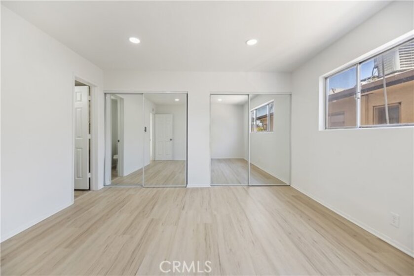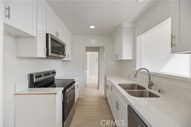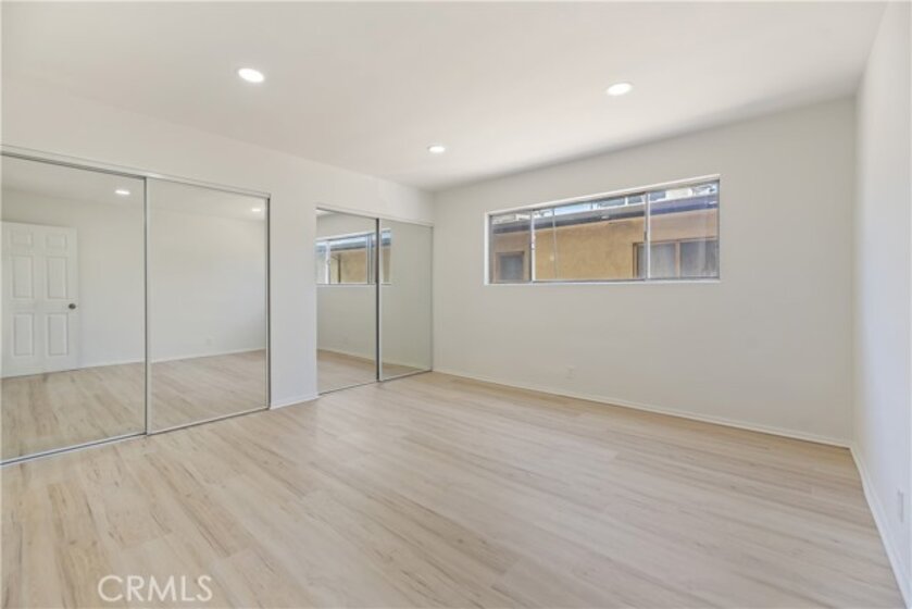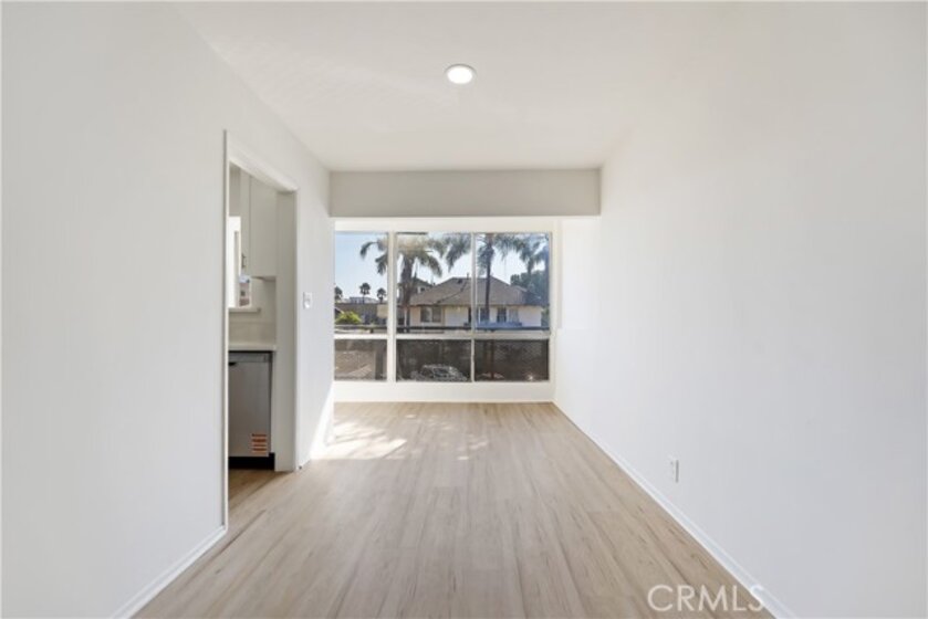 This stylish Long Beach condo offers a private courtyard entry and a bright, welcoming interior. A large wall of glass picture windows fills the living room with natural light, complemented by flush-mount lighting and light-colored luxury plank flooring throughout. An additional panel of windows in the dining area provides views of the neighborhood’s palm trees, while a kitchen serving window makes entertaining easy. The remodeled kitchen features crisp white cabinetry, sleek black and stainless steel appliances, a stainless steel double sink with a high-arc faucet, and quartz counters. The spacious primary suite offers two full-length mirrored wardrobe closets and direct access to its beautifully updated ensuite bathroom with glass-door walk-in shower and tastefully tiled surround, new fixtures, and quartz-topped vanity. A secondary bedroom also includes mirrored wardrobe doors, providing abundant storage. The remodeled hall bathroom includes a new tub/shower enclosure with glass shower doors, quartz counters, new floors, and modern fixtures. Raised panel doors and thoughtful finishes enhance the home’s fresh appeal. With its stylish updates, natural light, and functional design, this condo combines comfort with a desirable location. With a remarkable walkability score of 94 you are sure to enjoy the local shops, boutiques, and restaurants, and it's very bikeable too with a score of 86. Enjoy nearby attractions like the waterfront and the brand-new Modern Civic Center. With endless activities and strong rental potential. Commuter-friendly with the convenient Metro Blue Line and easy freeway access. All this for an affordable price. See it today!