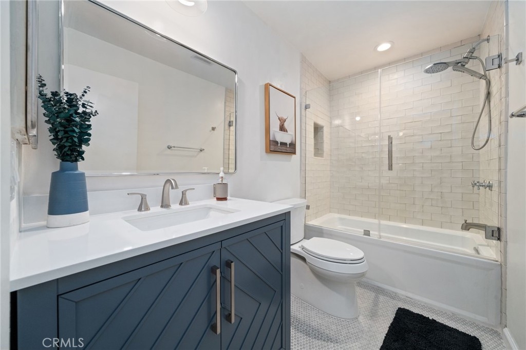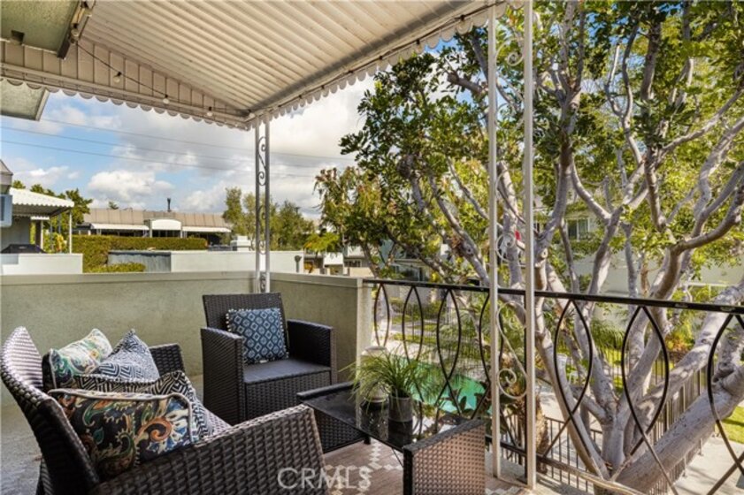 Welcome to this beautifully renovated 2-bedroom, 2-bath home in the desirable community of Sovereign Park Estates. With 1,241 square feet of thoughtfully designed living space, this residence blends relaxed coastal vibes with smart, stylish upgrades throughout. The over-sized living room can potentially be converted into a 3rd bedroom, office, or den. The primary suite offers a quiet retreat, featuring an oversized closet, newer floors, and an updated en-suite bathroom with a walk-in shower. A fully upgraded hallway bathroom adds both function and flair, ideal for daily living and hosting. Throughout the unit, modern custom wall accents add texture and personality, creating a space that feels curated yet comfortable. Original hardwood floors have been beautifully restored, creating a warm, natural feel throughout. The kitchen combines style and utility, with matching appliances, designer lighting, and subtle Spanish-inspired touches, perfect for cooking and entertaining. Just beyond the main living area, a private balcony overlooks the pool and lush greenery, offering the ideal spot to relax under the California sun. The mature tree in front of the unit provides plenty of privacy while enjoying your balcony. Additional comforts include radiant heat, a newer water heater and electrical panel (both installed in 2022), and not one but two parking spaces, one in a shared garage, and the other assigned. Inside the garage, you have a Tesla wall charger, ready for your EV lifestyle. Living in Sovereign Park Estates means access to five pools, a fitness center, billiard room, a library, a clubhouse, and convenient laundry facilities. The monthly HOA fee includes water, trash, sewer, Frontier high-speed internet, and DirecTV with a sports package. Just three miles from the beach and close to the Colorado Lagoon, Alamitos Bay, and the vibrant Long Beach lifestyle, this home is more than a place to live; it’s a place to thrive.