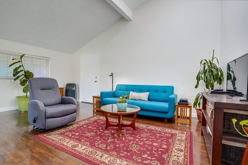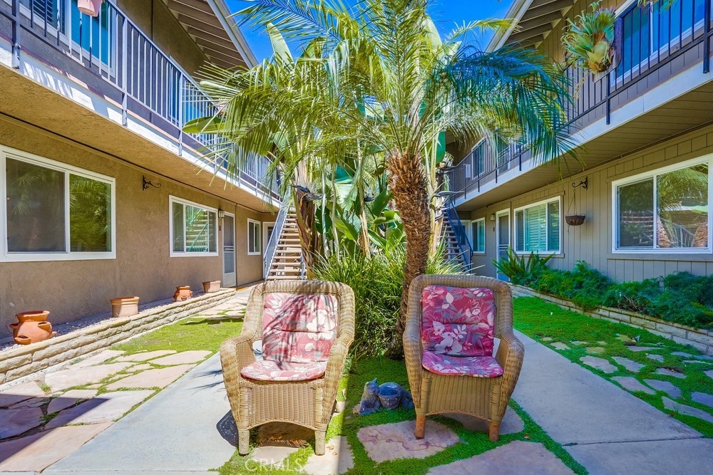 Rare Belmont Heights unit with two separate enclosed garages. Beautiful top floor, end unit with no one above or below. Newly painted interior with gorgeous dark, laminate flooring. The vaulted ceiling with skylights creates a light, bright and spacious feel. Updated kitchen and bath accent the living space. Dual pane windows enhance the serene atmosphere and add a modern feel. The lush entrance and courtyard landscaping transport you upon entering the space. This is a unique small complex on a quiet residential tree lined street.