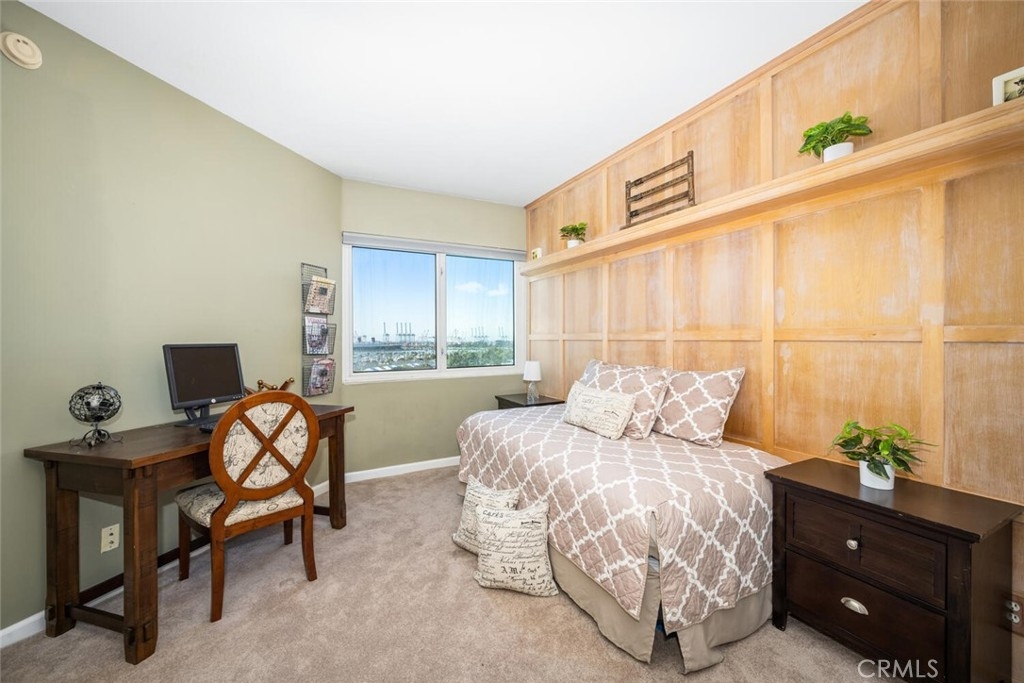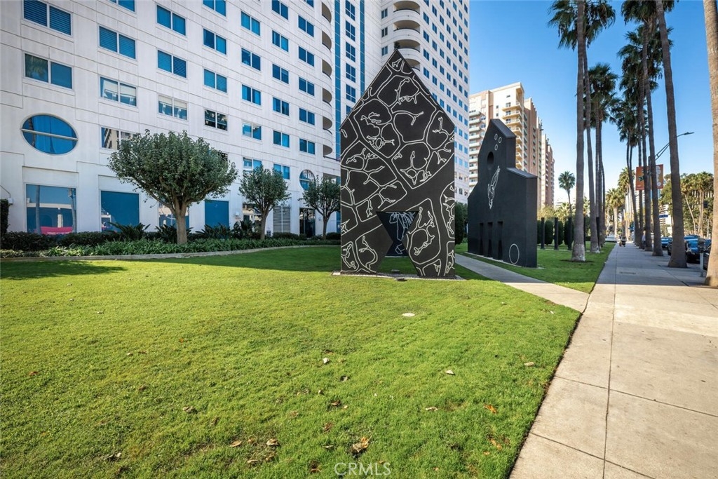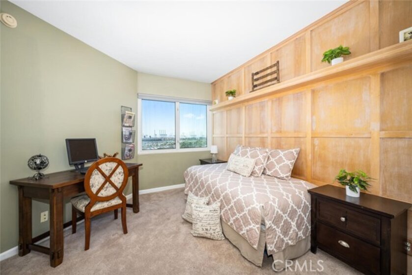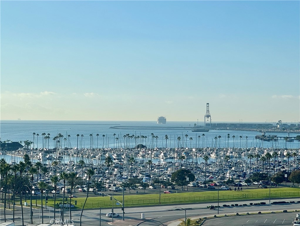 This fantastic ninth floor unit with an updated kitchen, amazing views of the ocean, Catalina Island, Queen Mary, the harbor, and sunsets waits for you. Unobstructed views greet your every day. High rise living, complete with a staffed front desk and 24 hour security, is the epitome of luxury. The amenities are many, and most, but not all, are listed below. The private balcony is the ideal getaway spot where you can daydream the hours away while enjoying the view. This downtown location is the epicenter of activity including the Long Beach Grand Prix. Ride your bike on the path, walk on the beach, explore Pine Ave, enjoy Shoreline Village and appreciate The Performing Arts Center with its numerous performances. I'm not sure there is a better view to be had of the LB Grand Prix. You can be in the living room, kitchen, or either bedroom and the views never stop. One unique downtown feature of this building is...LOTS of parking! You have two spaces for yourself but there are tons of visitor spots, so have a party! And if that 's not enough, the kitchen has been nicely updated and looks beautiful. The appliances are ALL quite new. The range top boasts a nice warmer element for your cooking pleasure. The flooring was installed last year. Even the heat pump was replaced, so no worries about heating and A/C for quite a while. Your laundry is tucked nicely away in a closet in the secondary bathroom. This unit is priced to sell, so come on by!