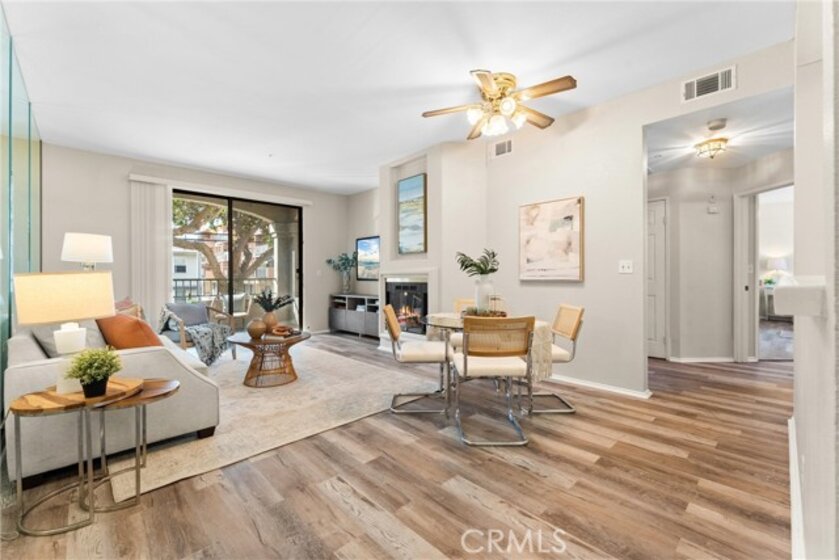 Beachside condo for the 2028 Olympics, Corner unit 2 bed, 2 bath, 2 parking spaces, private balcony, in-unit laundry, and walkable access to downtown Long Beach dining, shopping, and entertainment. This spacious two bedroom, two bathroom home features an open floor plan with durable vinyl flooring, a striking mirrored wall that enhances the sense of space and natural light, and a cozy fireplace that creates a warm and inviting living area. The living room flows seamlessly to a private balcony, ideal for enjoying fresh air and outdoor relaxation. The kitchen is equipped with white cabinetry, tiled counters, a stainless steel microwave, gas stove, and a breakfast bar that connects to the dining and living space, making it perfect for entertaining. Both bedrooms are generously sized with large mirrored closets, while the primary suite includes its own private bath. Additional highlights include the convenience of in-unit laundry with a stacked washer and dryer, and two assigned parking spaces (#34 and #35) in the secured community garage. Located just blocks from the ocean, the Long Beach Aquarium, Convention Center, The Promenade, new City Hall, and the new library, this home is surrounded by vibrant restaurants, shopping, and coastal attractions. With gated entry, proximity to Metro access, and walkability to everything Downtown Long Beach has to offer, this condo is as convenient as it is desirable. Just in time for the 2028 Olympics, it’s the perfect place to call home or an incredible opportunity to rent out during the games.