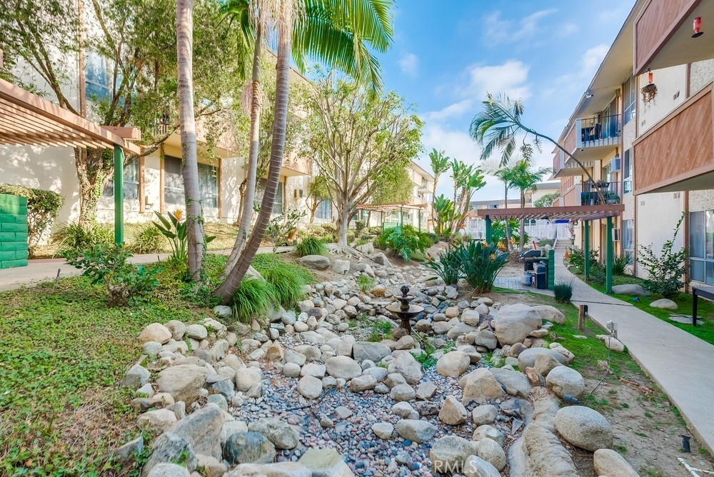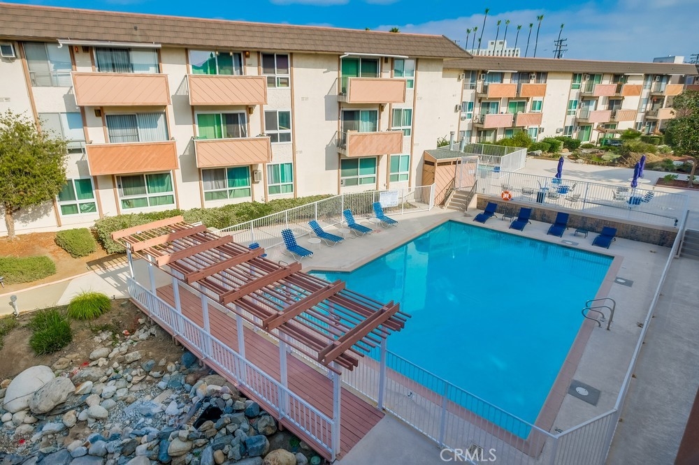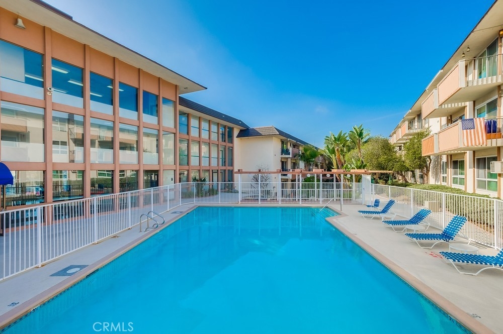 PARK OCEAN CONDO ~ Resort Style Living, Spacious top floor one bedroom condo with balcony in desirable area. Light & bright unit with kitchen that opens to living space with balcony. This private and gated community features a heated sparkling pool, spa, sauna, tennis courts, BBQ area, gym and community and party room with large TV & more. One assigned parking space. HOA dues include water, trash & sewer. Easy access to Belmont Shore, CSULB, 2nd & PCH Shopping Center, restaurants and freeways.