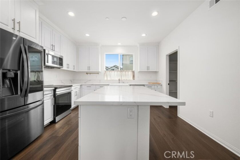 Better than new! SOLAR INCLUDED!! 1-year-old stunning KB Home in a quiet location on Linden Ave. No builder wait, no construction delays. MOVE-IN-READY! Why pay more when this one is roughly $10K less for same model, in same location in complex? Three story, 3 spacious bedrooms (with closet organizers included:) 2.5 Lovely baths! Open floorplan, beautiful spacious flooring, kitchen with island, quartz countertops and walk-in pantry! Stainless steel upgraded refrigerator and washer/dryer included!! BONUS: Freezer in garage included! (No charge for upgrades that are already built-in on this one! ) Gated Community and security guard. 2-Car garage (with direct access) and storage cabinets an extra included! Plenty of guest parking. View of community pool, picnic area/cabana and pet friendly! This high efficiency, energy star/water sense home saves you money and is the Environmental Protection Agencies highest standard for water efficiency and performance. Hurry! This one won't last long!