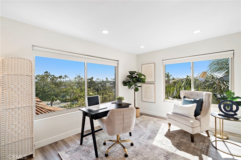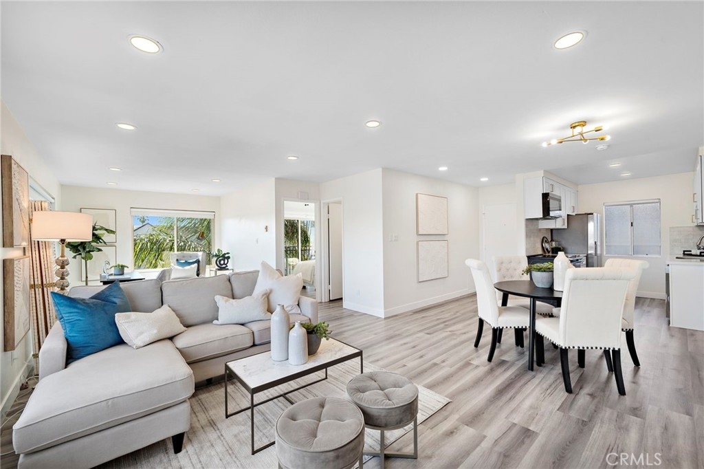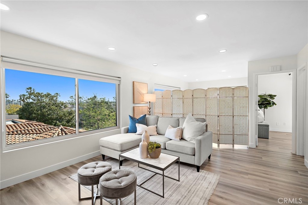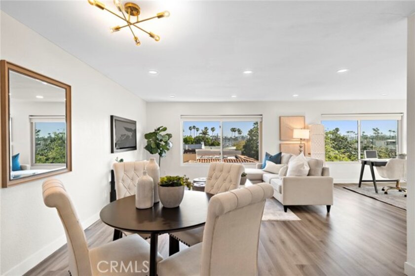 Welcome to this panoramic ocean view penthouse condo in Naples which is fully bathed in natural light! This exquisitely remodeled home is a corner top floor unit, only one building away from the Naples Bay. The home has been fully remodeled, including a new kitchen with top of the line finishes and appliances, including shaker cabinets and quartz countertops, new stainless steel appliances, recessed lighting and vinyl plank flooring throughout. The bathroom includes dual sinks, quartz countertops, gorgeous tile and a marble shower with a Rainfall Shower Head System. The master bedroom features a Juliet balcony with ocean breezes and a stunning view of the Naples Bay. The second bedroom wall was opened up to allow for panoramic views and natural light into the entire condo, and that second bedroom wall could be easily added back. The building includes a shared, fully accessible and spacious rooftop deck with panoramic 360 degree, dramatic coastal and city views and spectacular sunsets. At the entrance of the corner unit, you can also enjoy palm trees and the close Ocean view from chairs facing floor to ceiling windows. The condo includes one gated parking spot #18, with storage closets, and there is a gated locked area for bikes. The condominium is located only one building from the water surrounded by multi-million dollar homes in the top rated Naples Elementary school area. ou couldn't ask for a better location, only steps from the ocean at the Naples Plaza Roundabout Park and within walking distance to restaurants, bars, beaches, the Long Beach marina, the new 2nd and PCH shopping center, and Belmont Shore. This is also an excellent location to be positioned for the 2028 Olympics in Long Beach.This one of a kind find is truly a gorgeous beach home you will not want to miss!