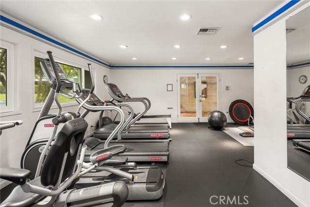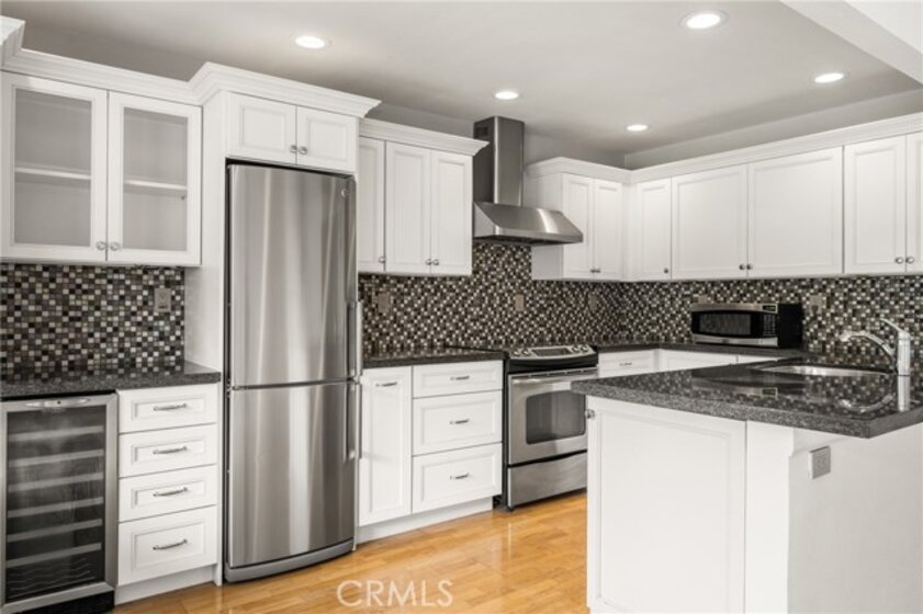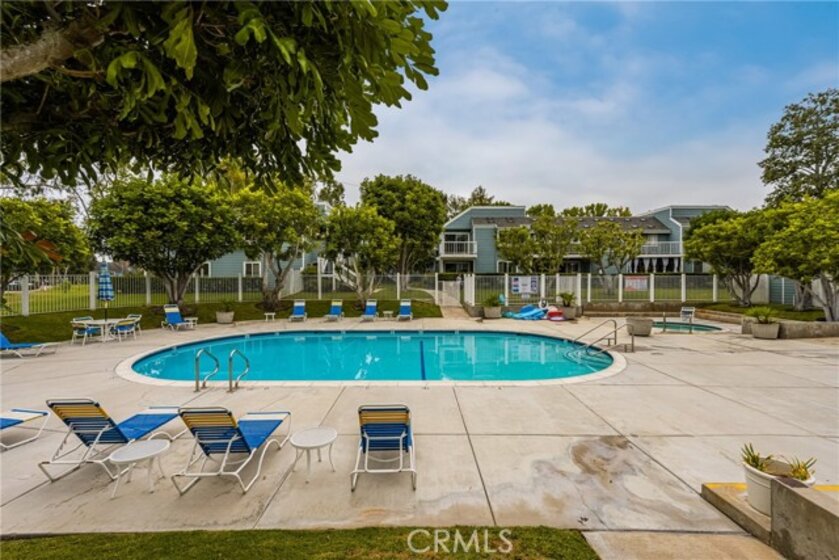 Welcome to this charming lower-level, single-story condo in the gated community of Village on the Green. Filled with natural light, this one-bedroom home features a newer kitchen and bathroom, recessed lighting in the kitchen, a convenient desk area in the bedroom, and even a small wine fridge. Fresh paint throughout adds a move-in ready touch. Step outside through the sliding glass door to a spacious private patio, beautifully enclosed with greenery, plus a secure outside storage area. Village on the Green offers resort-style amenities, including a pool, spa, fitness center, and a clubhouse with a billiards table. An outdoor cooking area with barbecues and seating makes it easy to relax and entertain. This home also includes two assigned parking spaces, one of which is covered. HOA dues include water and trash for added convenience. This inviting condo combines comfort, style, and convenience—perfect for everyday living or a relaxing retreat.