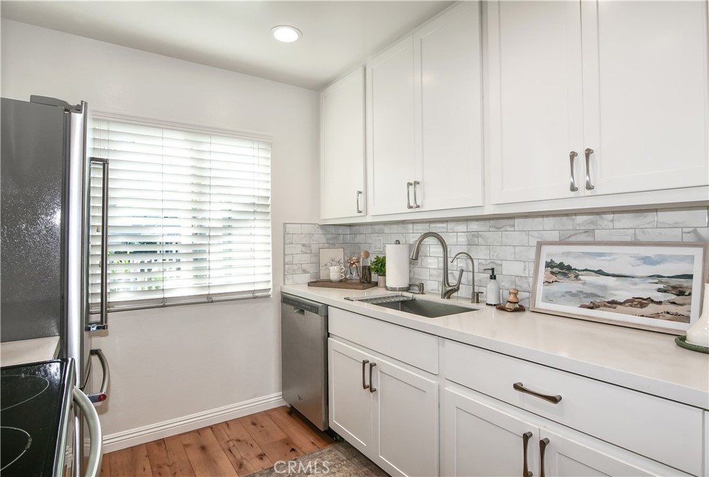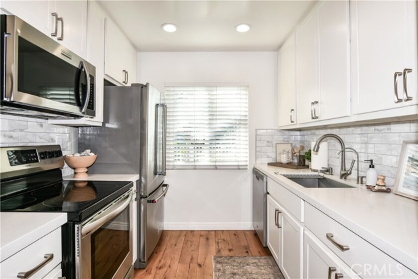 Welcome to this rarely available private end unit condo in Bixby Village, one of Long Beach's most desirable resort style communities. This beautifully updated two bedroom (both with generous walk in closets), two bathroom home offers a prime pool view location with peekaboo views of the golf course, creating a tranquil vacation like setting year round. The updated kitchen is equipped with stainless steel appliances and Frosty Carrina quartz Caesarstone counters. This home also features updated bathrooms with high end finishes including marble. Some other updates include recessed lighting, contemporary fans, custom blinds and real hardwood flooring throughout and an inside washer and dryer closet. Enjoy the best of coastal living with the beach just moments away, convenient freeway access and lively shops and restaurants of 2nd and PCH right around the corner.