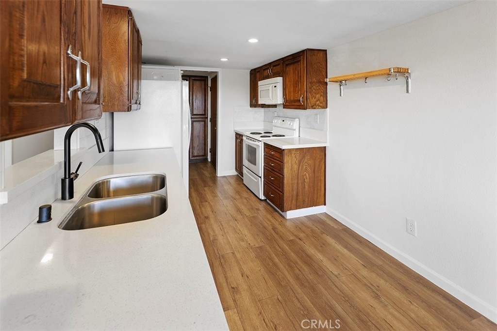 Prime Downtown Long beach location! Just blocks from the beach, 605 Redondo Ave #301 is a large 2 bedroom 2 bathroom unit. From the formal entryway is a direct sightline to the large private balcony. Entertaining is made easy with this open floor plan, allowing perfect flow throughout the main living area with ample natural light from the glass patio doors. Newer installed dark laminate flooring can be seen throughout the unit, adding a modern feel to the space. The kitchen is spacious with updated quartz countertops against dark cabinetry. The stackable in-unit laundry is a bonus, making a mundane task easier! The master bedroom features a private en suite with remodeled walk in shower and walk in closet. The secondary bedroom is spacious with mirrored closets. The guest bathroom has been completely renovated with new cabinetry, granite countertops and a walk in shower. The community is secured with a courtyard and elevator for convenience. The unit comes with 2 assigned parking spaces.